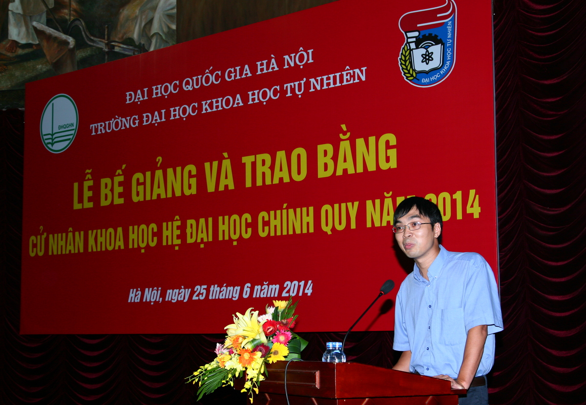 Vào những ngày tháng sáu này đúng hai mươi năm trước, năm 1994, cũng tại giảng đường này, tôi là một trong số các bạn sinh viên đang ngồi đây hồi hộp chờ đợi một bước ngoặt lớn trong cuộc đời của mình. Đó là thời khắc giã từ mái Trường Đại học Tổng hợp Hà Nội trước đây, mà nay là Trường Đại học Khoa học Tự nhiên. 20 năm sau, đây quả thực là một niềm vinh dự lớn đối với tôi khi được thay mặt tất cả các cán bộ, giảng viên của Trường nói lời tạm biệt với các bạn trước khi chúng ta chia tay.