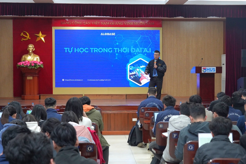Từ ngày 17-21/3/2025, tại Trường Đại học Khoa học Tự nhiên (ĐHKHTN), ĐHQGHN hàng trăm sinh viên K67 đã có cơ hội tham gia chuỗi bài giảng đặc biệt mang tên “Tự học trong thời đại AI”. Chương trình được dẫn dắt bởi Thạc sĩ Nguyễn Minh Cường - admin Cộng đồng Bình dân học AI, Chuyên gia tư vấn trưởng tại Alobase. Với kinh nghiệm chuyên sâu về giáo dụng ứng dụng AI, hệ sinh thái startup và chuyển đổi số, ThS. Nguyễn Minh Cường đã mang đến cho sinh viên những góc nhìn mới mẻ và phương pháp học tập hiệu quả trong thời đại công nghệ bùng nổ.