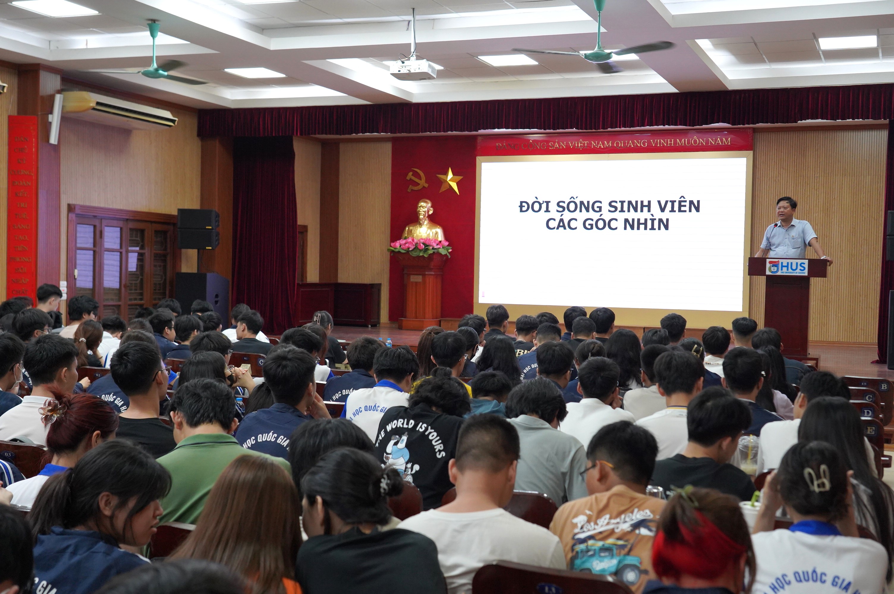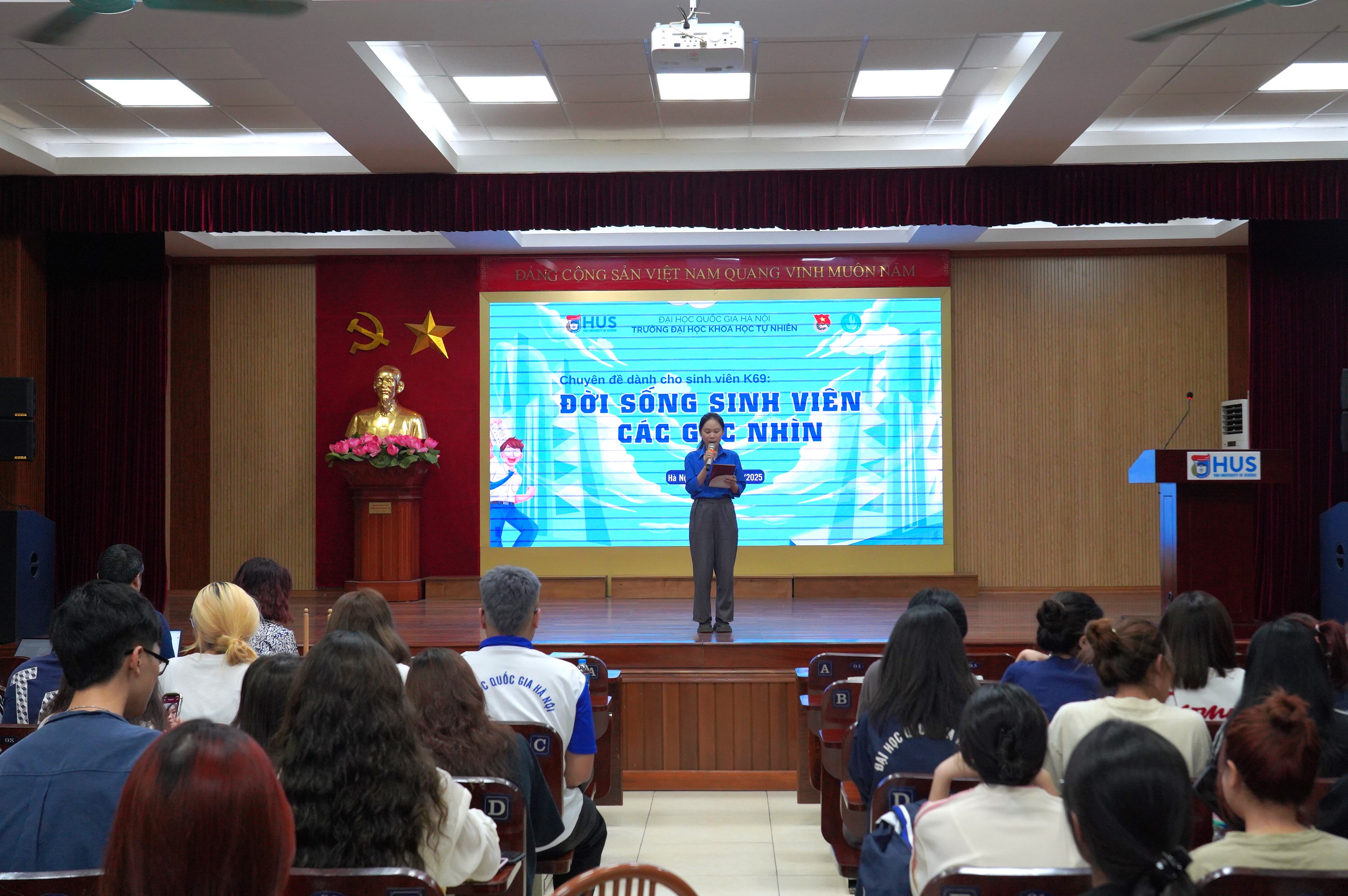 Từ ngày 5/5 đến ngày 12/5/2025, Trường Đại học Khoa học Tự nhiên, ĐHQGHN đã mang đến cho sinh viên năm nhất một “món quà tinh thần” đó là buổi học tập chuyên đề “Đời sống sinh viên - Các góc nhìn”. Đây không chỉ đơn thuần là buổi nói chuyện mà còn là hành trình khám phá đời sống sinh viên với đủ hương - sắc - vị, nơi các bạn trẻ không chỉ lắng nghe mà còn được “soi chiếu” vào chính cuộc sống của mình từ những góc nhìn rất thật, rất đời.