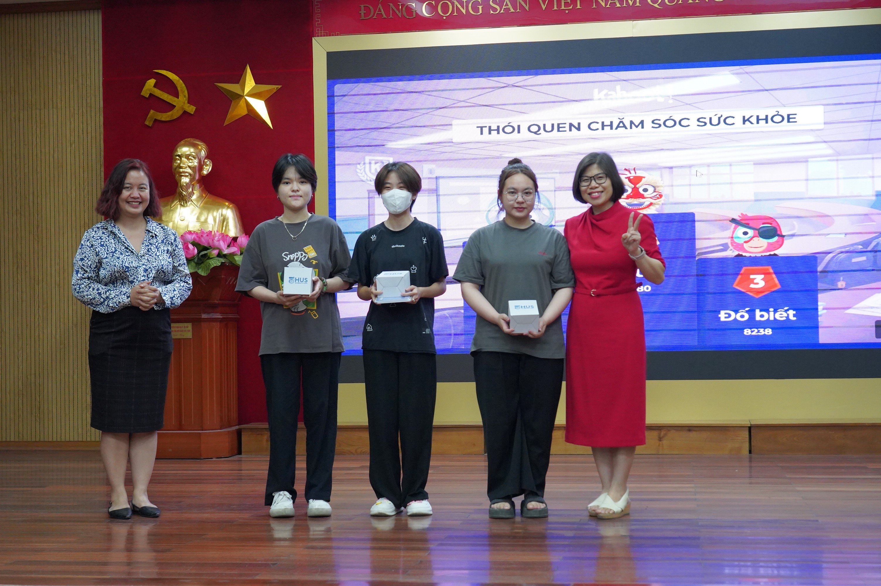 ThS. Bùi Việt Ánh và TS. Trần Thơ Nhị tặng quà cho các bạn sinh viên chinh phục thành công thử thách