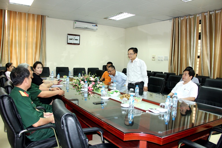 Đại tá Đinh Văn Hưởng - Phó Giám đốc phụ trách Đào tạo và nghiên cứu khoa học và Đại tá Nguyễn Duy Khải - Chủ nhiệm Khoa Quân sự, Ths.Tăng Tài Hoa - Trưởng phòng Hậu cần - Kỹ thuật đại diện Trung tâm tiếp đón đoàn công tác của trường ĐH KHTN.