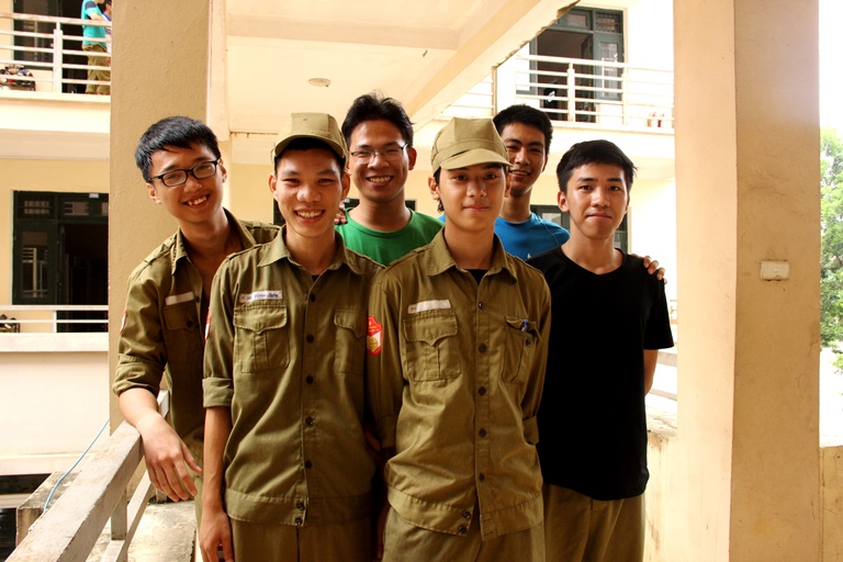 Các em sinh viên phấn khởi khi được lãnh đạo nhà trường quan tâm, thăm hỏi. Sinh viên Trần Văn Dinh - khoa Môi trường khóa QH2016 tâm sự: “Sáng dậy từ 5h30 để tập thể dục, tối 9h đi ngủ. Giờ ăn, giờ học răm rắp. Công việc mất nhiều thời gian để luyện tập nhất là gấp chăn màn, mất một tuần em mới gấp đúng như yêu cầu”. Em Nguyễn Danh Mạnh - ngành Máy tính và Khoa học thông tin “khoe”: “Ở đây rất sướng, cơm ăn ba bữa, quần áo mặc cả ngày. Em rèn được nếp sống ngăn nắp, khoa học, tốt cho sức khỏe, đặc biệt là tinh thần đoàn kết với các bạn trong phòng, trong tiểu đội và đại đội. Hy vọng sau kỳ học sẽ duy trì được một phần nếp sinh hoạt này”.