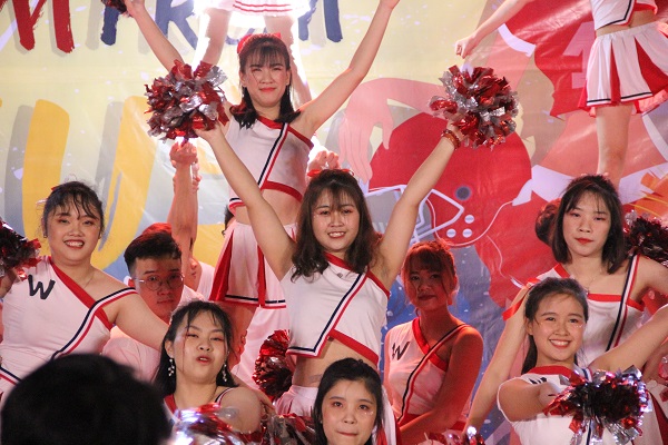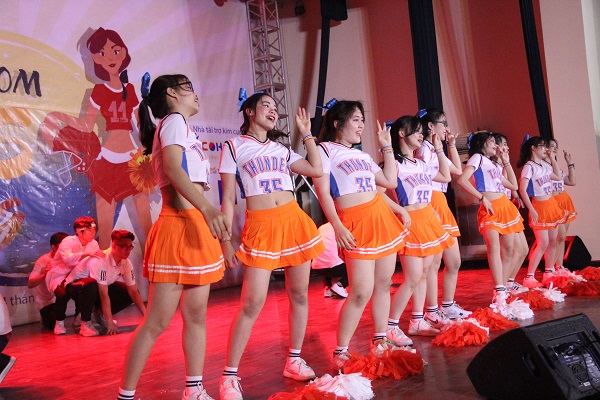 Các tiết mục cheerleading sôi động cùng sự cổ vũ cuồng nhiệt của các cổ động viên đã đem đến một bầu không khí bùng nổ tại Hội trường Kí túc xá Mễ Trì