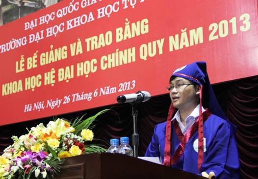 Đỗ Duy Hiếu phát biểu cảm tưởng tại Lễ bế giảng và trao bằng tốt nghiệp năm 2013