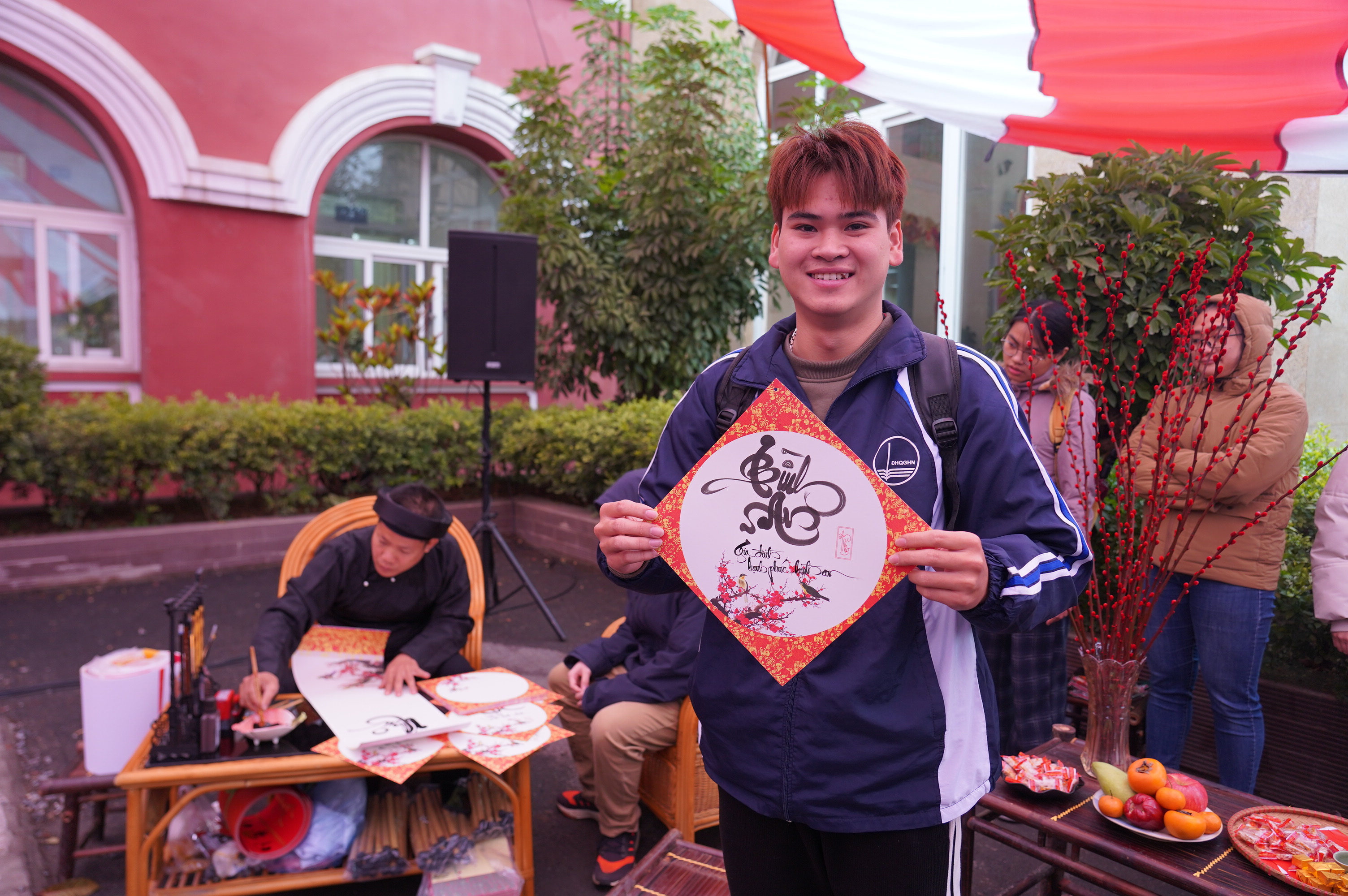 "Chàng trai Vàng trong làng Toán học" Ngô Quý Đăng, người hai lần giành Huy chương Vàng Olympic Toán quốc tế, trong đó, có một lần đạt điểm số tuyệt đối của kỳ thi này (năm 2022), cựu học sinh Trường THPT Chuyên KHTN và cựu sinh viên lớp Cử nhân khoa học tài năng Toán học (Trường ĐHKHTN) trở về từ Pháp ăn Tết với gia đình. Ngô Quý Đăng hiện đang học tại Trường Đại học Sư phạm Paris. Em chia sẻ: “Cuộc sống xa xứ khiến em tự lập hơn”. Em đến Trường ĐHKHTN tham gia chương trình Chào Xuân Ất Tỵ và xin chữ "Như Ý" với mong muốn năm mới mọi thứ được như ý.
