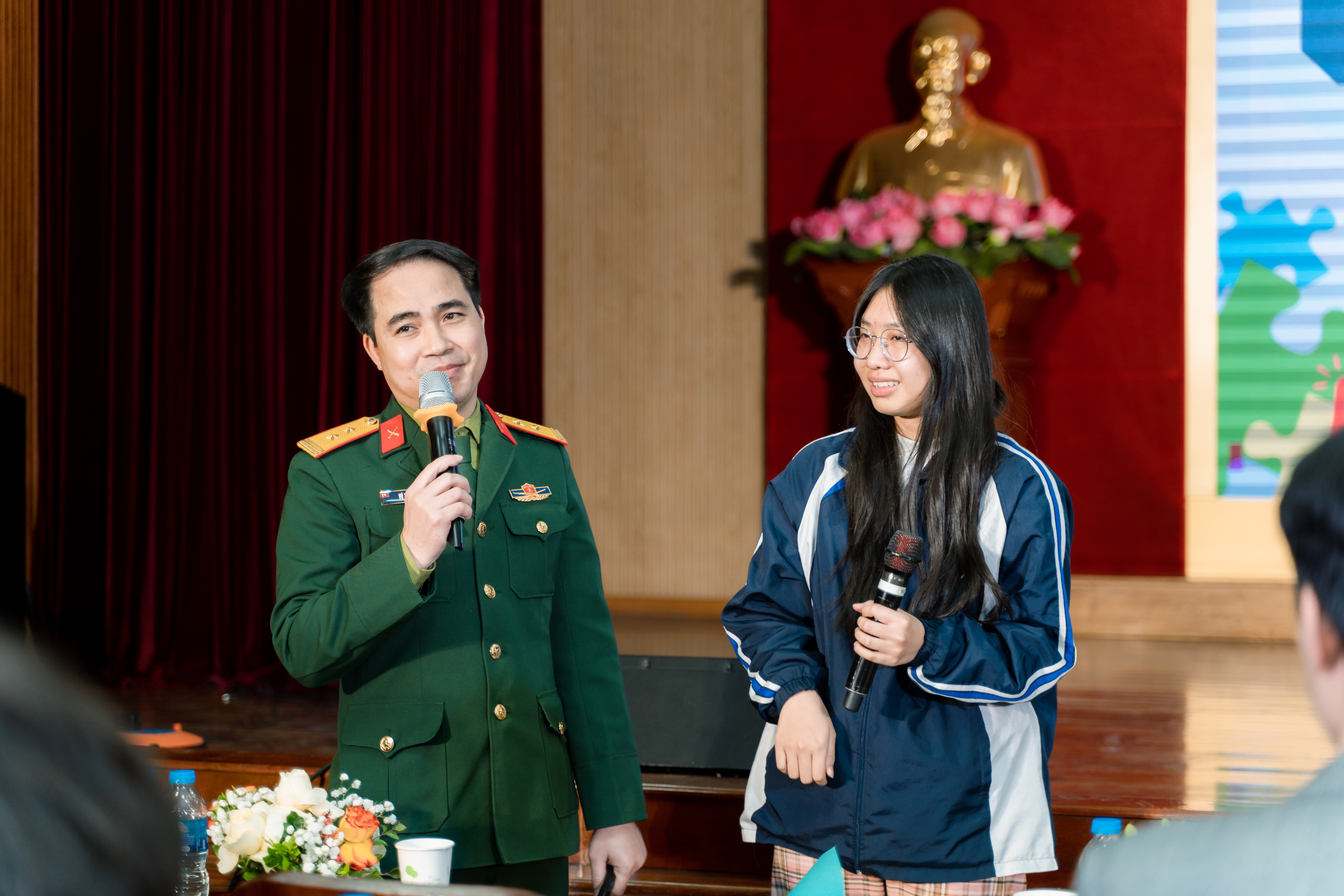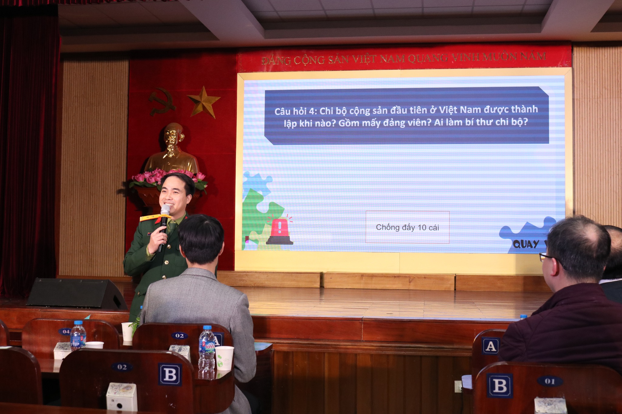 Trong phần học tập chuyên đề "ĐẢNG VỚI THANH NIÊN - THANH NIÊN VỚI ĐẢNG", các bạn sinh viên đã được cùng nhau trao đổi với Trung tá, Tiến sĩ Vũ Xuân Trường, Chủ nhiệm Bộ môn Khoa công tác Đảng, Công tác Chính trị, Trường Đại học Chính trị về những nội dung quan trọng giúp các bạn hiểu rõ hơn về lịch sử Đảng, vai trò của tổ chức Đoàn, cũng như cách vận dụng những giá trị truyền thống vẻ vang của Đảng vào bối cảnh hiện nay.