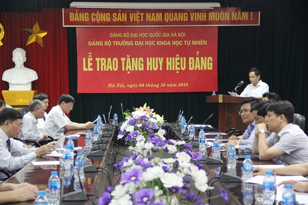 Căn cứ Quyết định của Ban Thường vụ Thành uỷ Hà Nội, Đảng ủy Trường Đại học Khoa học Tự nhiên (ĐHKHTN) đã tổ chức Lễ trao tặng Huy hiệu Đảng cho các đồng chí đảng viên đủ 45 và 30 năm tuổi Đảng của Nhà trường.