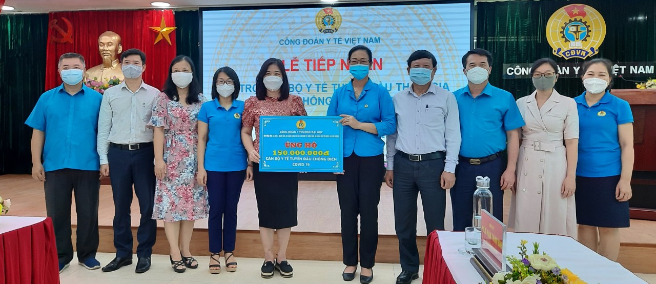 Sáng 09/7/2021, tại trụ sở Công đoàn Y tế Việt Nam, đại diện Ban Thường vụ Công đoàn 5 Trường Đại học tại Hà Nội (bao gồm: Trường Đại học Khoa học Tự Nhiên, Trường Đại học Khoa học Xã hội & Nhân văn, Trường Đại học Bách Khoa Hà Nội, Trường Đại học Kinh tế Quốc dân, Trường Đại học Xây dựng) đã trao số tiền 150 triệu đồng ủng hộ đội ngũ cán bộ y tế nơi tuyến đầu chống dịch Covid -19.