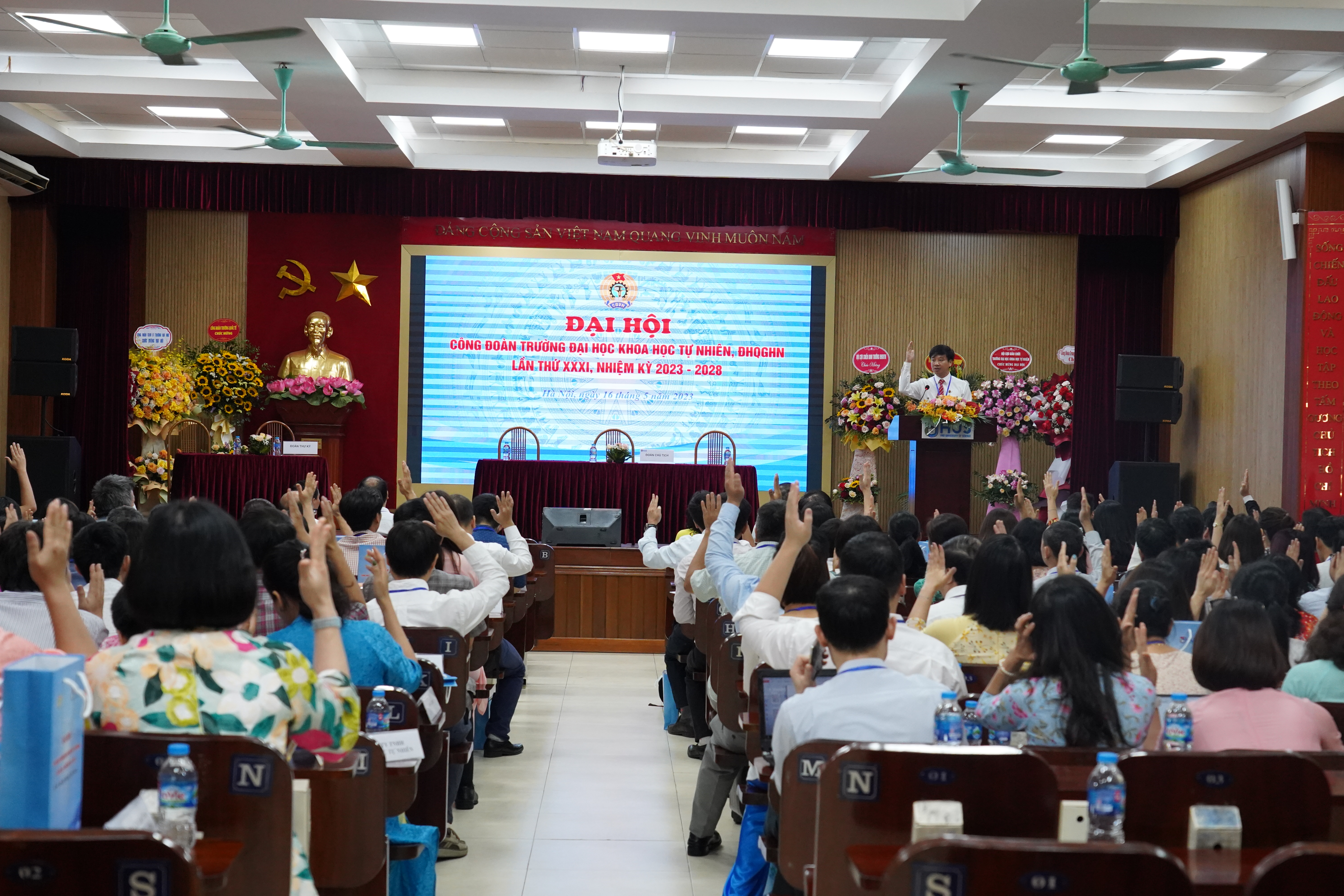 Ngày 16/5/2023, tại Trường Đại học Khoa học Tự nhiên – Đại học Quốc gia Hà Nội (ĐHKHTN – ĐHQGHN) đã diễn ra Đại hội Công đoàn Trường lần thứ XXXI, nhiệm kỳ 2023 – 2028. Trải qua hai phiên làm việc, đại hội đã bầu ra Ban chấp hành nhiệm kỳ mới, bầu Đoàn đại biểu dự đại hội Công đoàn ĐHQGHN, đồng thời thông qua Nghị quyết đại hội.