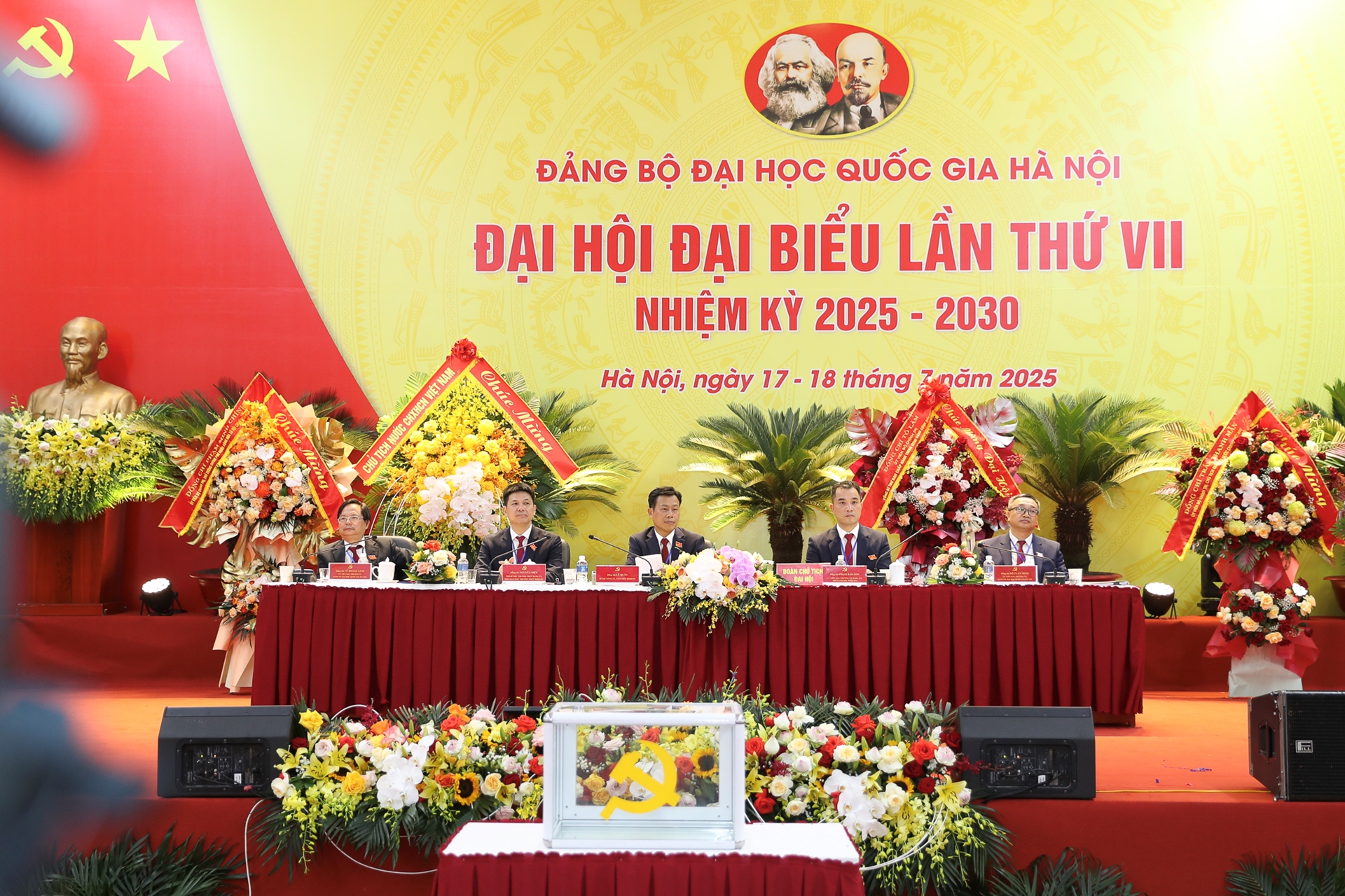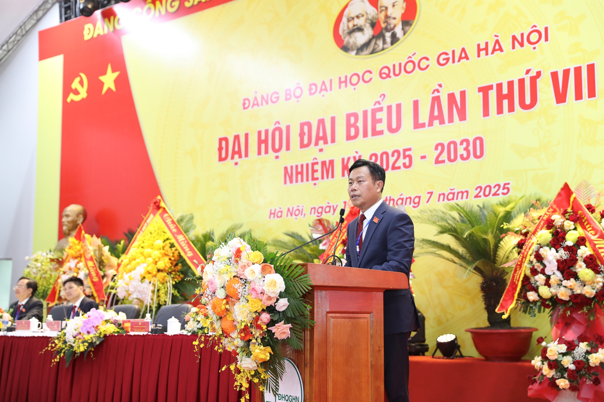 Trong diễn văn khai mạc, Bí thư Đảng ủy, Giám đốc ĐHQGHN Lê Quân cho biết, Đại hội đại biểu Đảng bộ ĐHQGHN lần thứ VII diễn ra vào thời điểm cả dân tộc đang chuyển mình mạnh mẽ để vươn lên phát triển. Trong bối cảnh đó, toàn thể cán bộ, đảng viên, học sinh, sinh viên ĐHQGHN bày tỏ niềm tin sâu sắc vào sự lãnh đạo của Đảng; ra sức thi đua, phấn đấu xây dựng, phát triển ĐHQGHN trở thành đại học đổi mới sáng tạo hàng đầu thế giới.