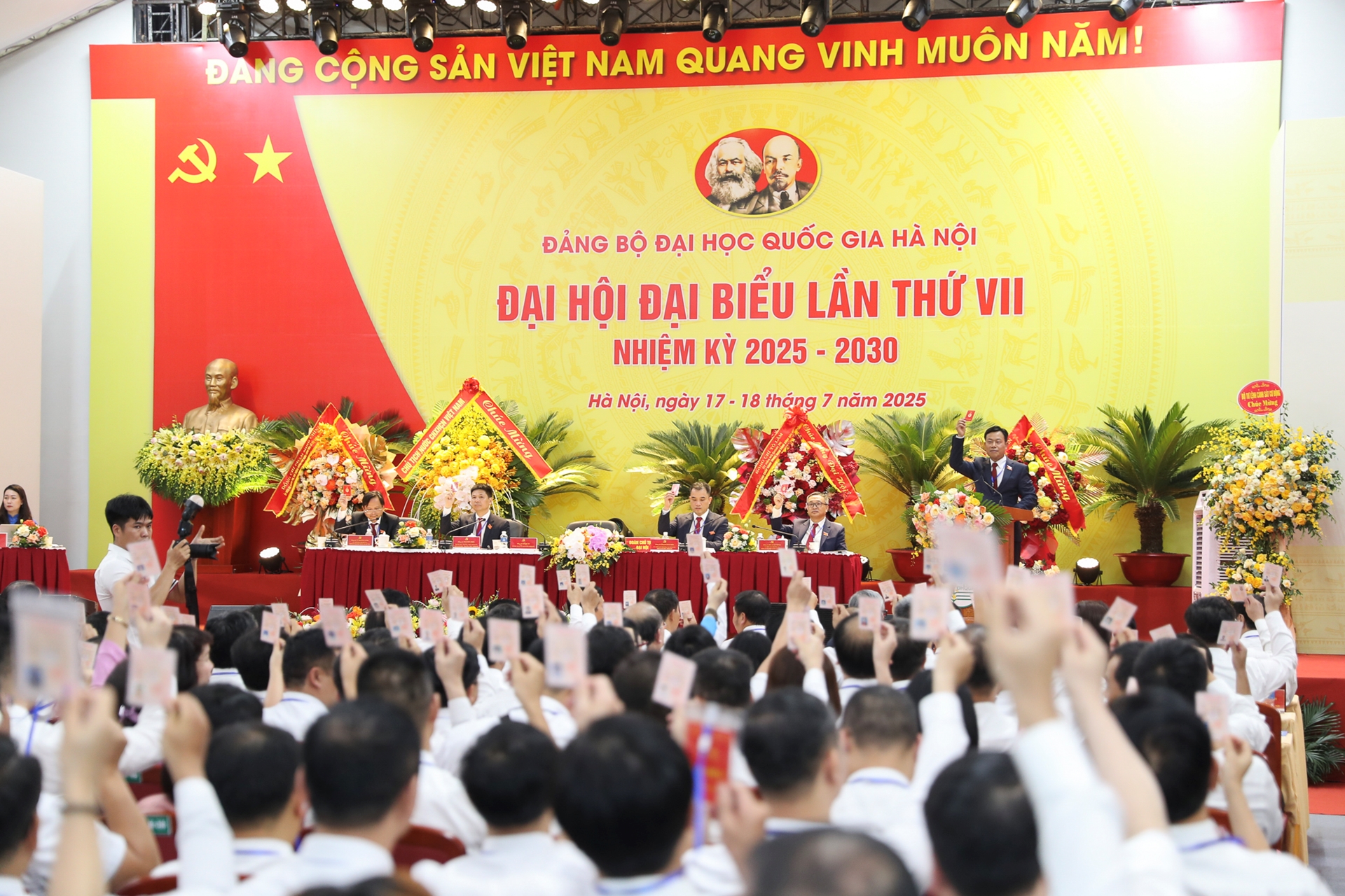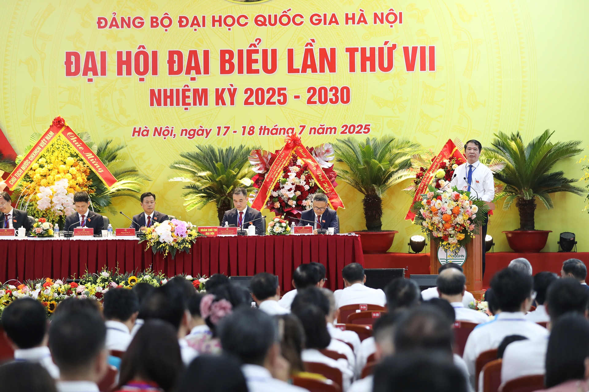 Đây là phương châm hành động của Đảng bộ ĐHQGHN tại Đại hội đại biểu Đảng bộ lần thứ VII, nhiệm kỳ 2025-2030, diễn ra trong hai ngày 17 và 18/7/2025 tại Khu Đô thị đại học Hòa Lạc, không gian phát triển mới của ĐHQGHN.