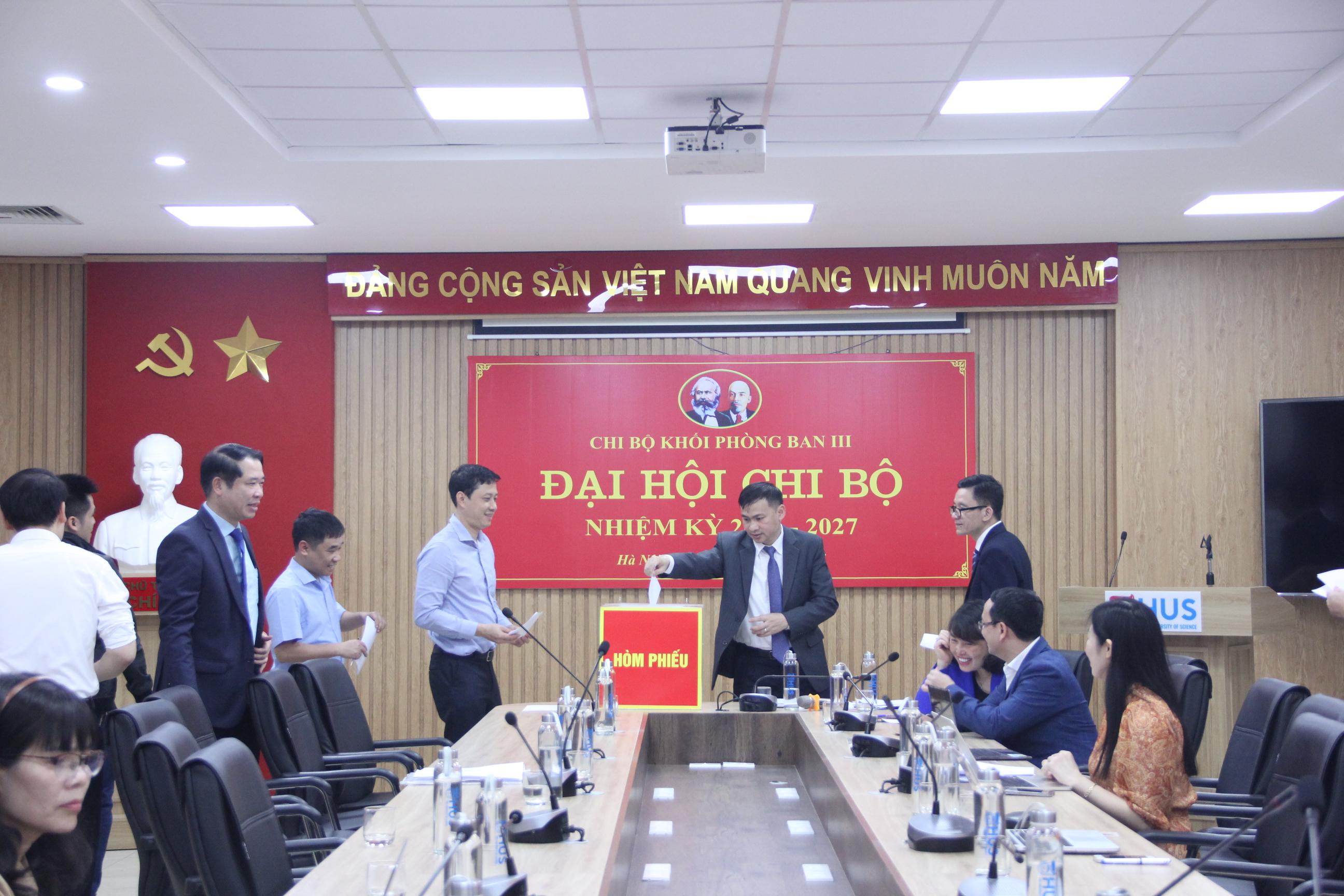 Đảng viên tham gia bỏ phiếu ở Đại hội chi bộ khối Phòng ban III