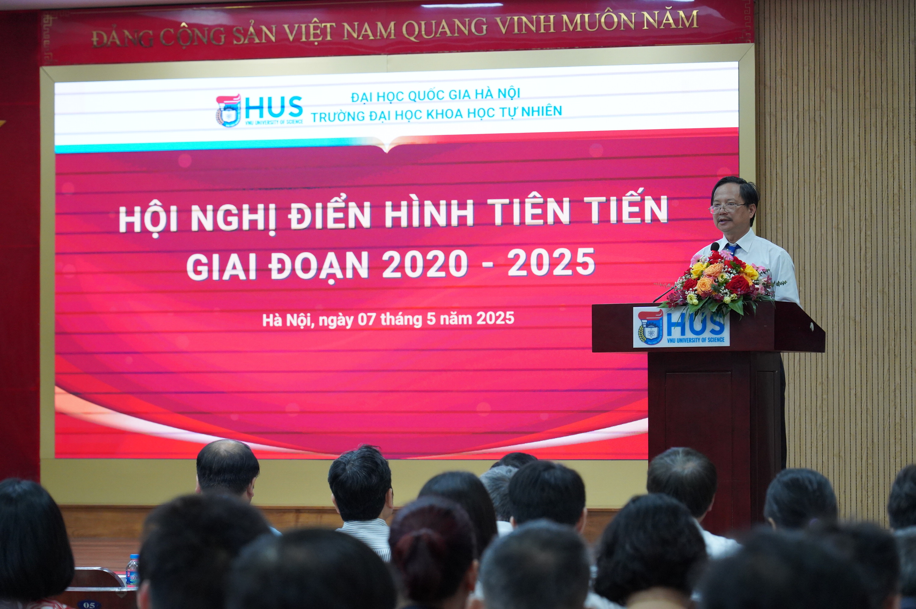 Hướng tới Đại hội Thi đua yêu nước ngành Giáo dục lần thứ VIII – năm 2025, chào mừng Đại hội Đảng bộ các cấp tiến tới Đại hội Đại biểu toàn quốc lần thứ XIV của Đảng, ngày 7/5/2025, Trường Đại học Khoa học Tự nhiên đã trang trọng tổ chức Hội nghị điển hình tiên tiến giai đoạn 2020-2025.