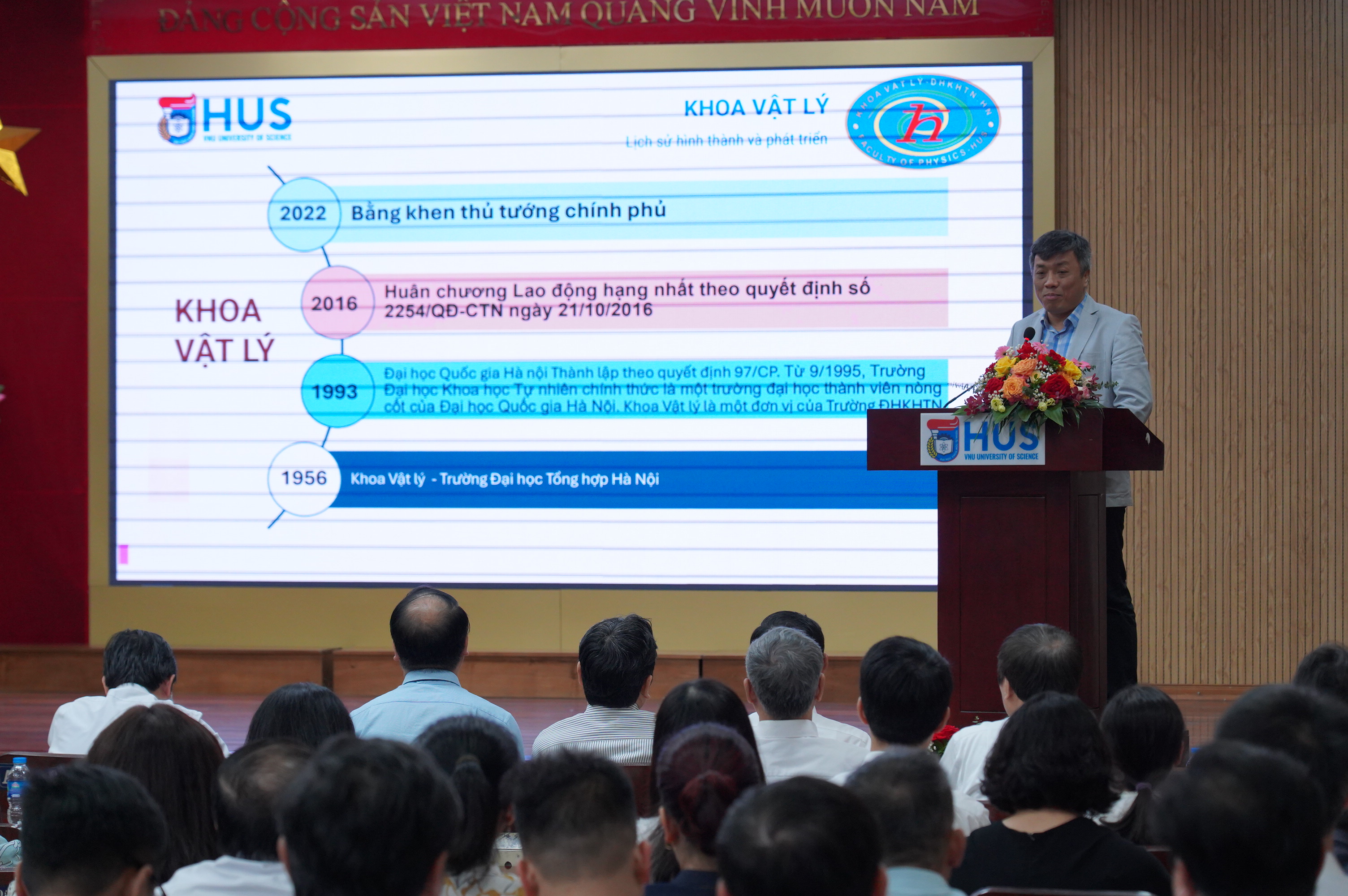 Tham dự hội nghị có ông Phạm Vương, Phó trưởng Ban Tổ chức và Thanh tra, Đại học Quốc gia Hà Nội; các thầy trong Đảng uỷ, Ban giám hiệu, Hội đồng Trường Đại học Khoa học Tự nhiên; đại diện Hội Cựu giáo chức, Hội Cựu chiến binh Trường và gần 200 đại biểu từ các đơn vị.