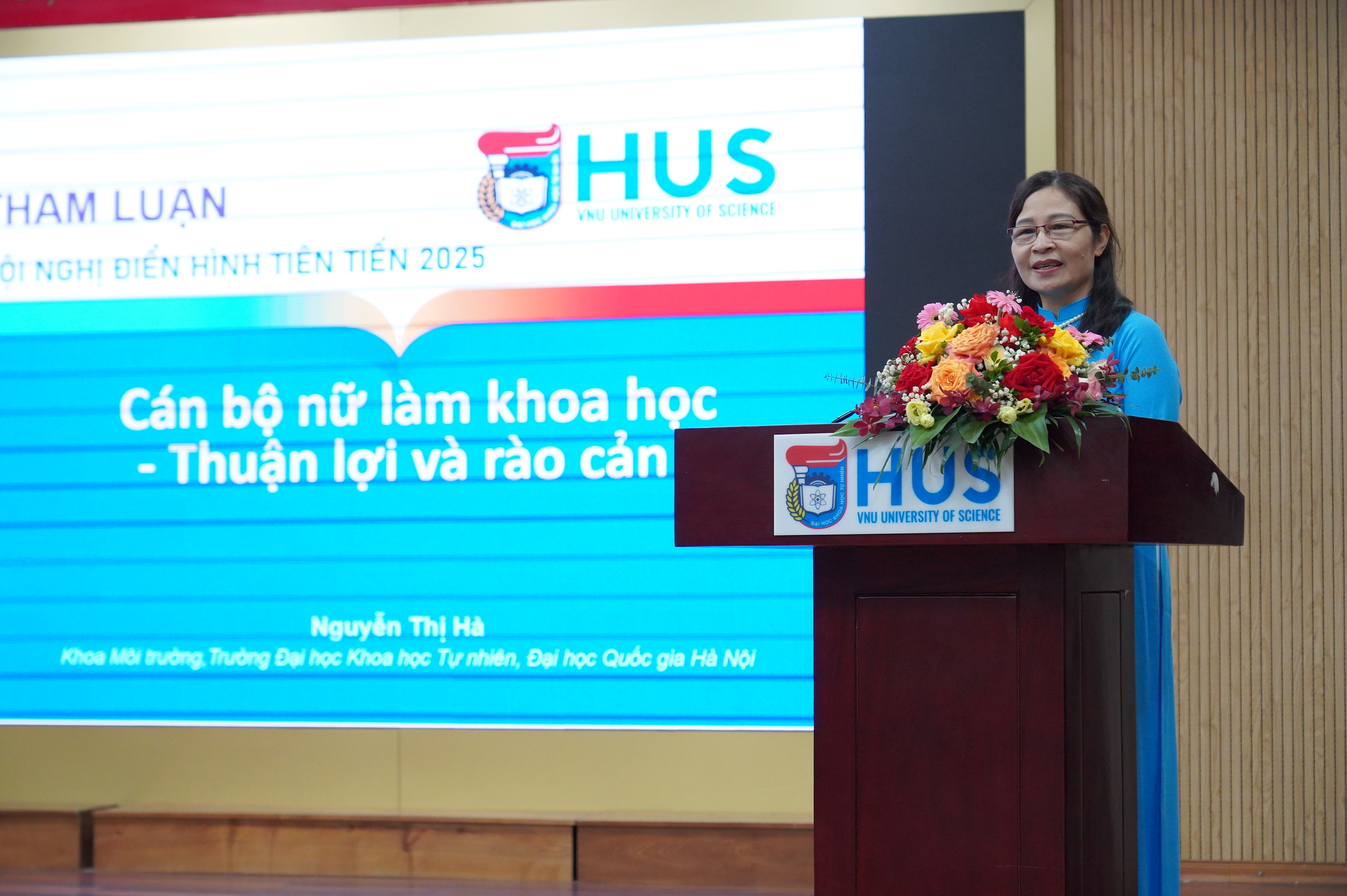Là một trong 06 nhà giáo của Trường được Chủ tịch nước tặng danh hiệu Nhà giáo ưu tú năm 2023, PGS.TS. Nguyễn Thị Hà, Khoa Môi trường trình bày tham luận: “Cán bộ nữ làm khoa học – Thuận lợi và rào cản”.