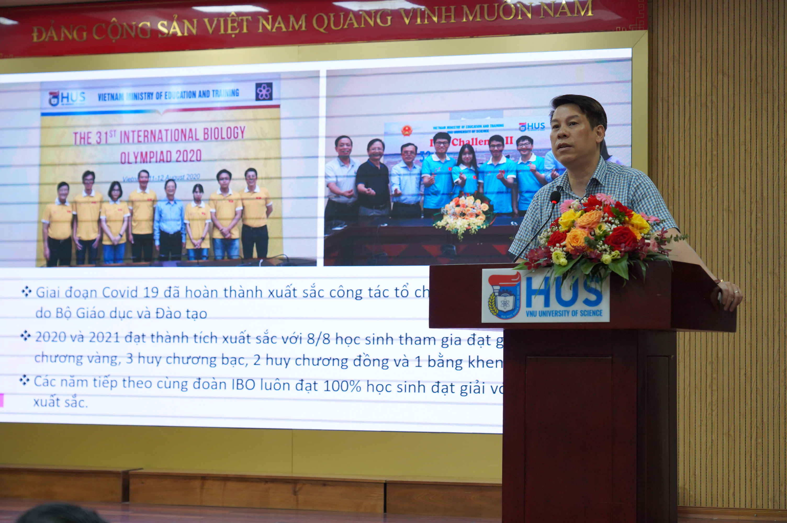PGS.TS. Nguyễn Quang Huy, giảng viên cao cấp khoa Sinh học, Giám đốc Phòng thí nghiệm trọng điểm công nghệ Enzym và Protein trình bày tham luận: “Tâm huyết trong giảng dạy, gắn kết công tác quản lý và góp phần bồi dưỡng tài năng trẻ”. Năm 2022, PGS.TS. Nguyễn Quang Huy được Thủ tướng Chính phủ tặng danh hiệu Chiến sĩ thi đua toàn quốc; năm 2024, PGS.TS. Nguyễn Quang Huy được nhận danh hiệu Nhà giáo ưu tú.