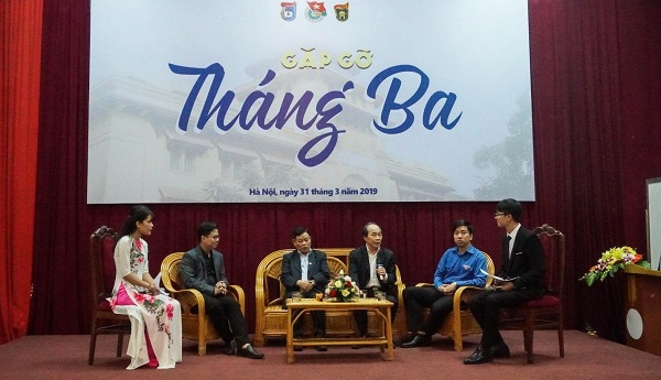 Sáng ngày 31/3/2019, tại Hội trường Lê Văn Thiêm, số 19 Lê Thánh Tông, Hà Nội, Đoàn Thanh niên Trường ĐHKHTN phối hợp với Đoàn Thanh niên Trường Đại học Khoa học Xã hội và Nhân văn (ĐHKHXH&NV) tổ chức chương trình gặp gỡ, giao lưu và chia sẻ kinh nghiệm công tác Đoàn qua các thời kỳ với tên gọi “Gặp gỡ tháng Ba”.