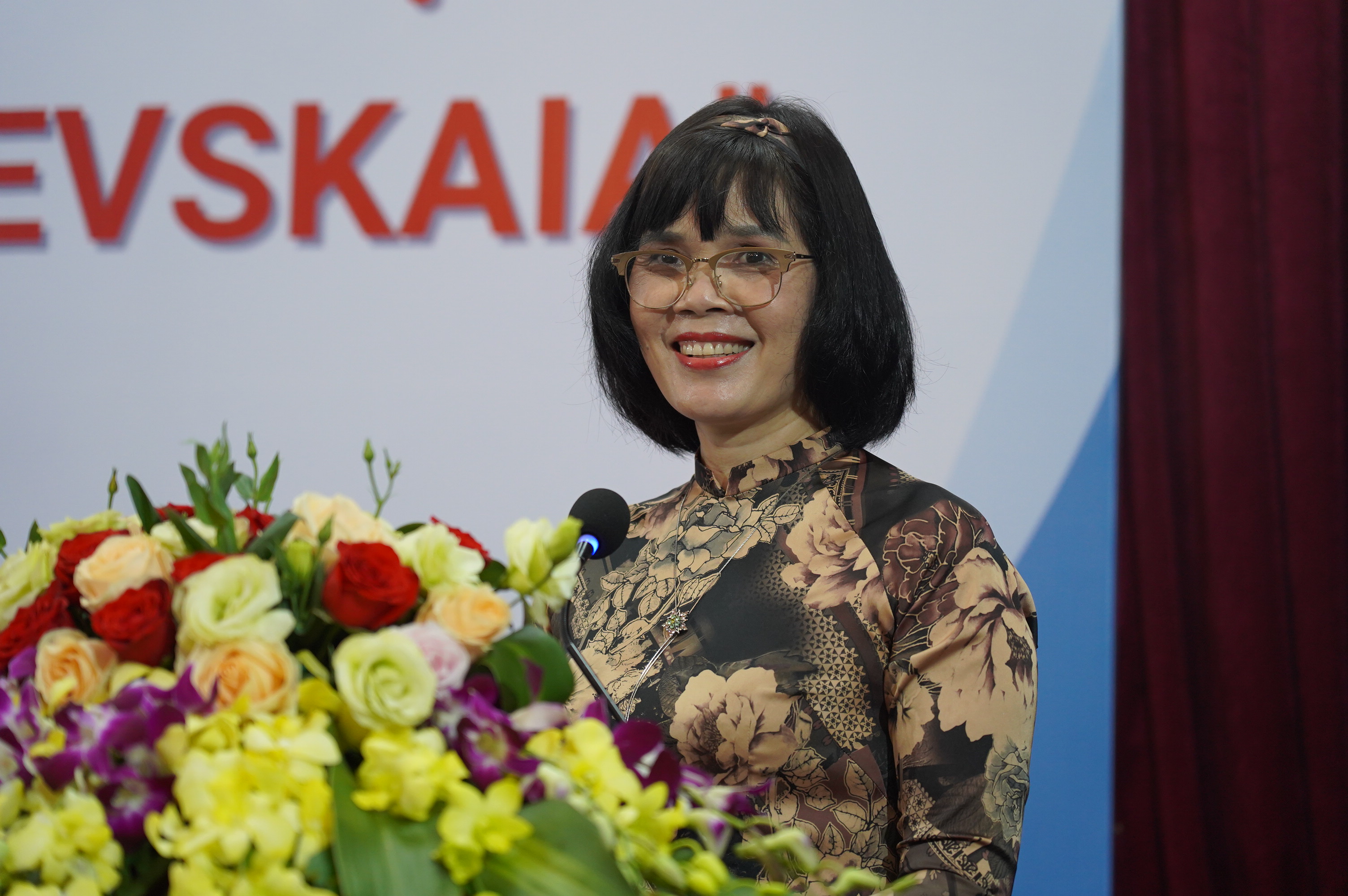 GS.TS. Lê Minh Thắng, Chi hội trưởng Chi hội Nữ trí thức Đại học Bách Khoa Hà Nội, chủ nhân giải thưởng Kovalevskaia năm 2022 phát biểu, chia sẻ tầm quan trọng của khoa học cơ bản đối với khoa học ứng dụng.