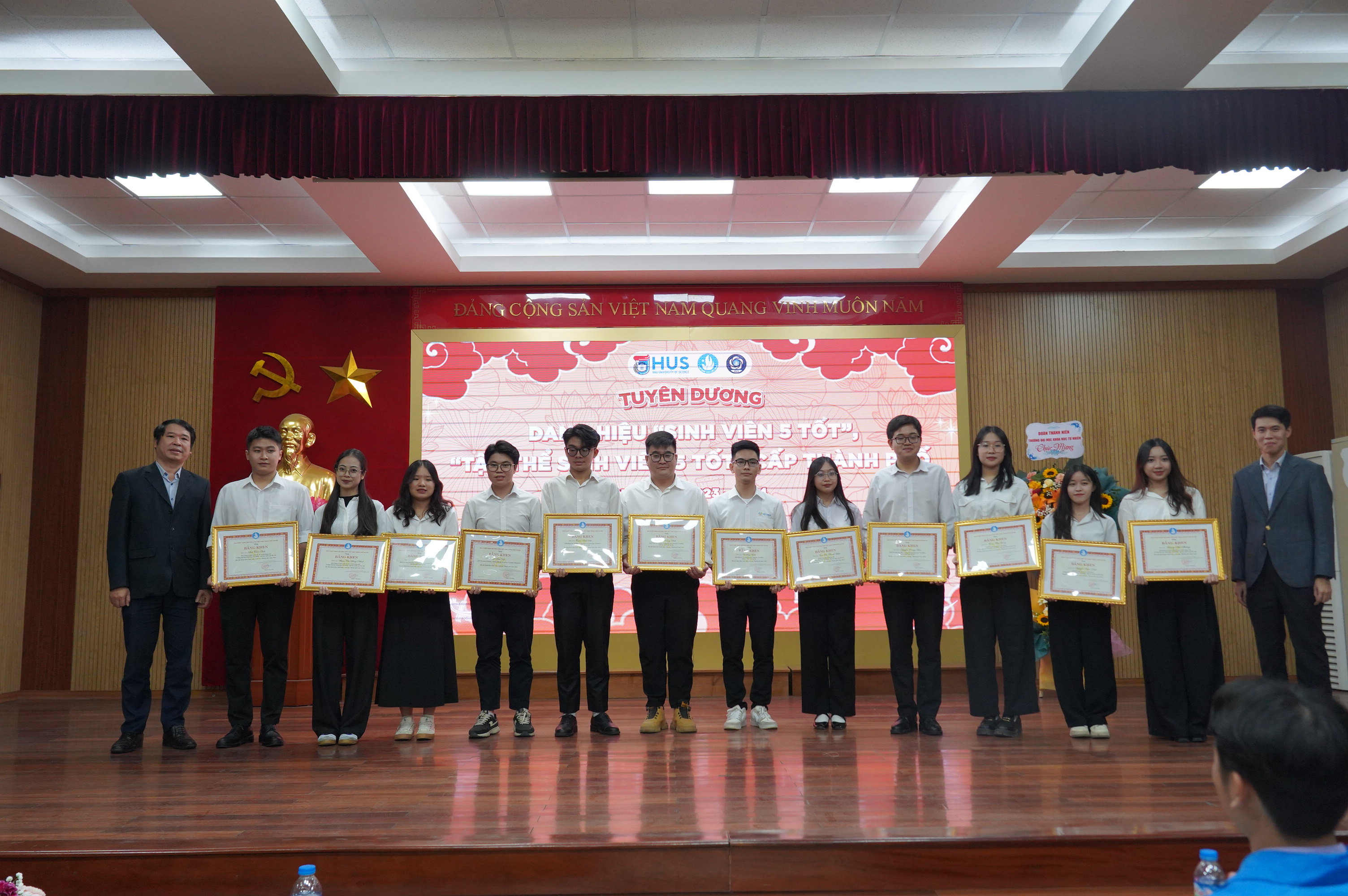 Trong năm học vừa qua, Trường Đại học Khoa học Tự nhiên có 99 cá nhân và 10 tập thể “Sinh viên 5 tốt” cấp Trường, 55 cá nhân và 1 tập thể “Sinh viên 5 tốt” cấp ĐHQGHN, 56 cá nhân và 1 tập thể “Sinh viên 5 tốt” cấp Thành phố và 3 cá nhân, 1 tập thể đạt danh hiệu “Sinh viên 5 tốt”, “tập thể Sinh viên 5 tốt” cấp Trung ương. Trong đó, 1 cá nhân vinh dự được Trung ương Hội Sinh viên Việt Nam trao tặng giải thưởng “Sao tháng Giêng” năm 2024.