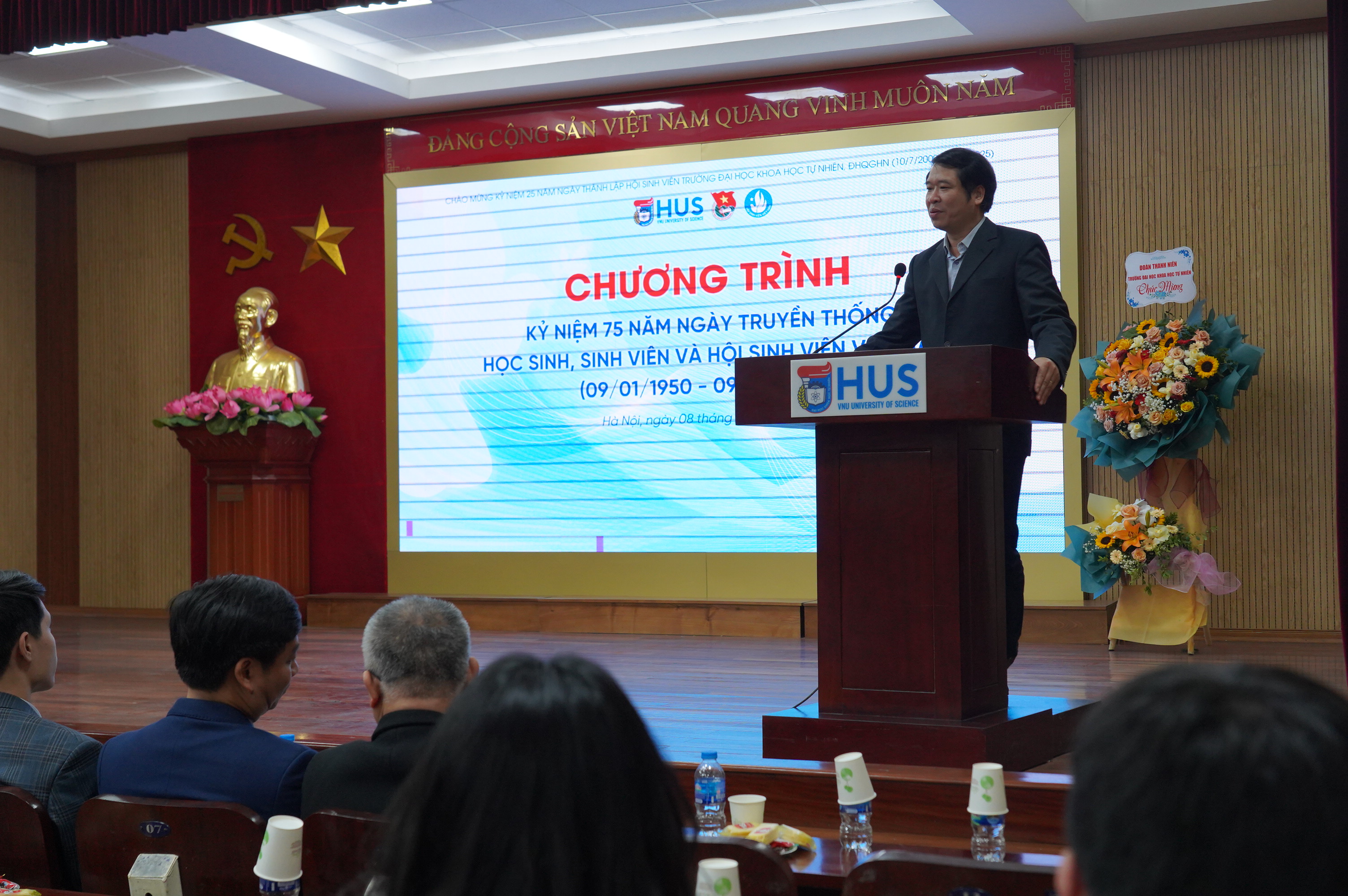 GS.TS. Lê Thanh Sơn, Phó Hiệu trưởng Trường ĐHKHTN phát biểu, tuyên dương những thành tích mà các tập thể và sinh viên Trường đã đạt được trong thời gian qua.