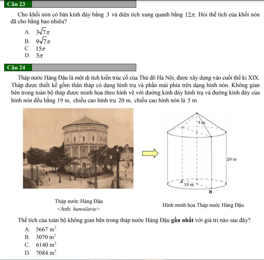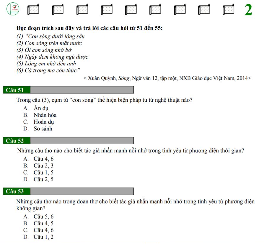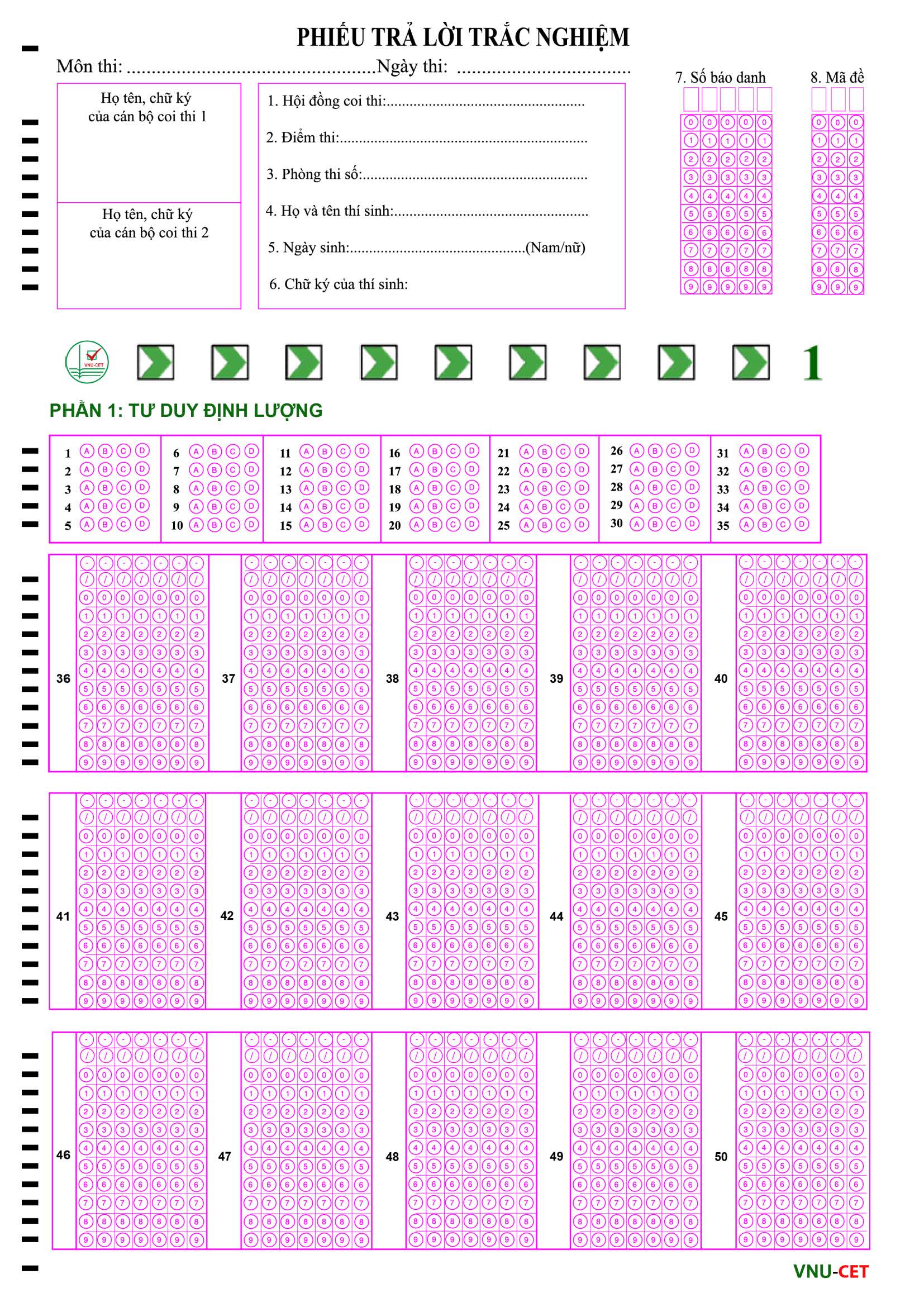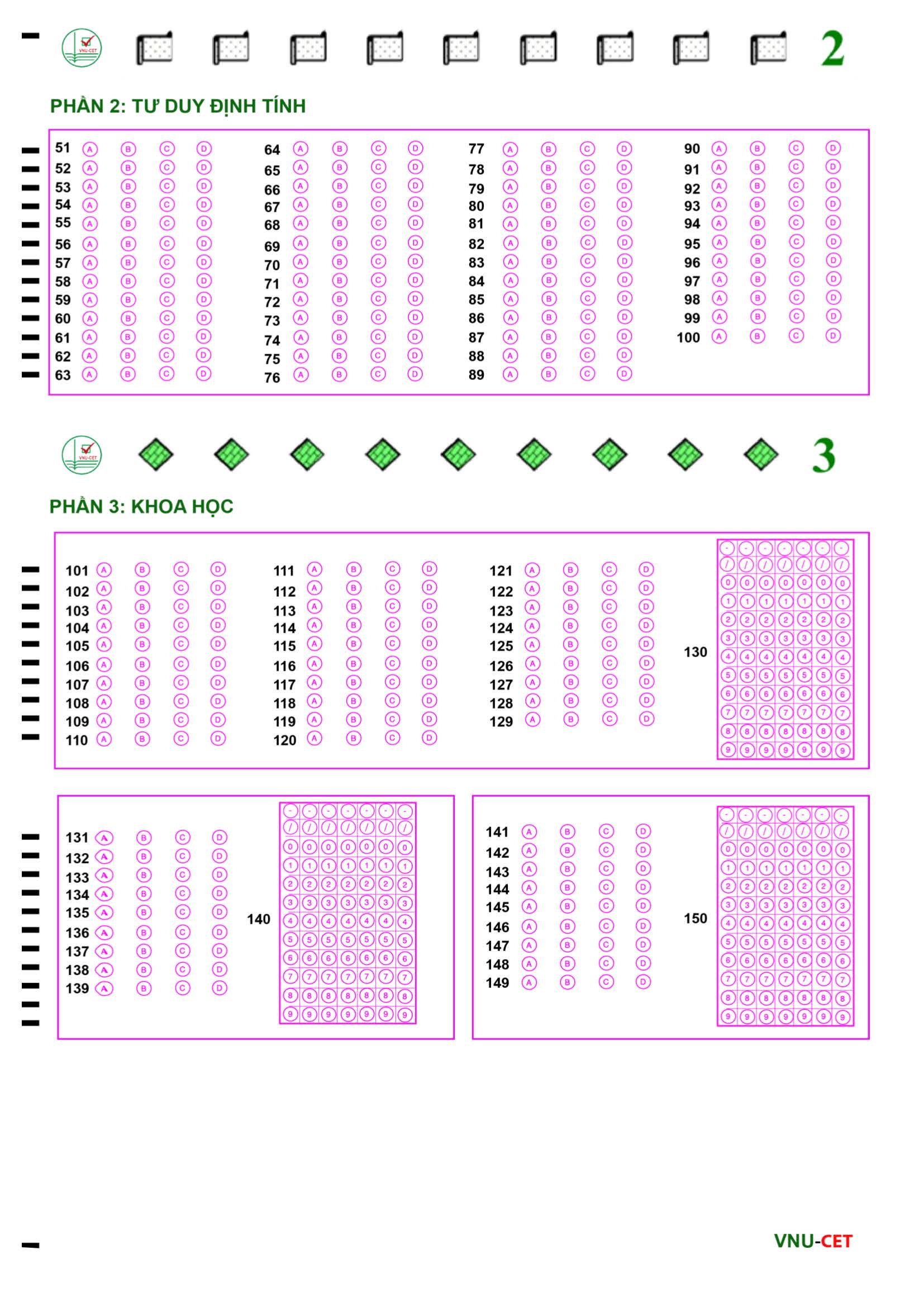 Dưới đây là một số ảnh chụp màn hình minh họa cho đề thi mẫu và phiếu trả lời:
