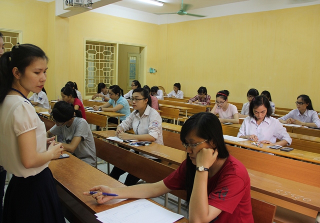 Giám thị nhắc nhở thí sinh các quy định trong phòng thi