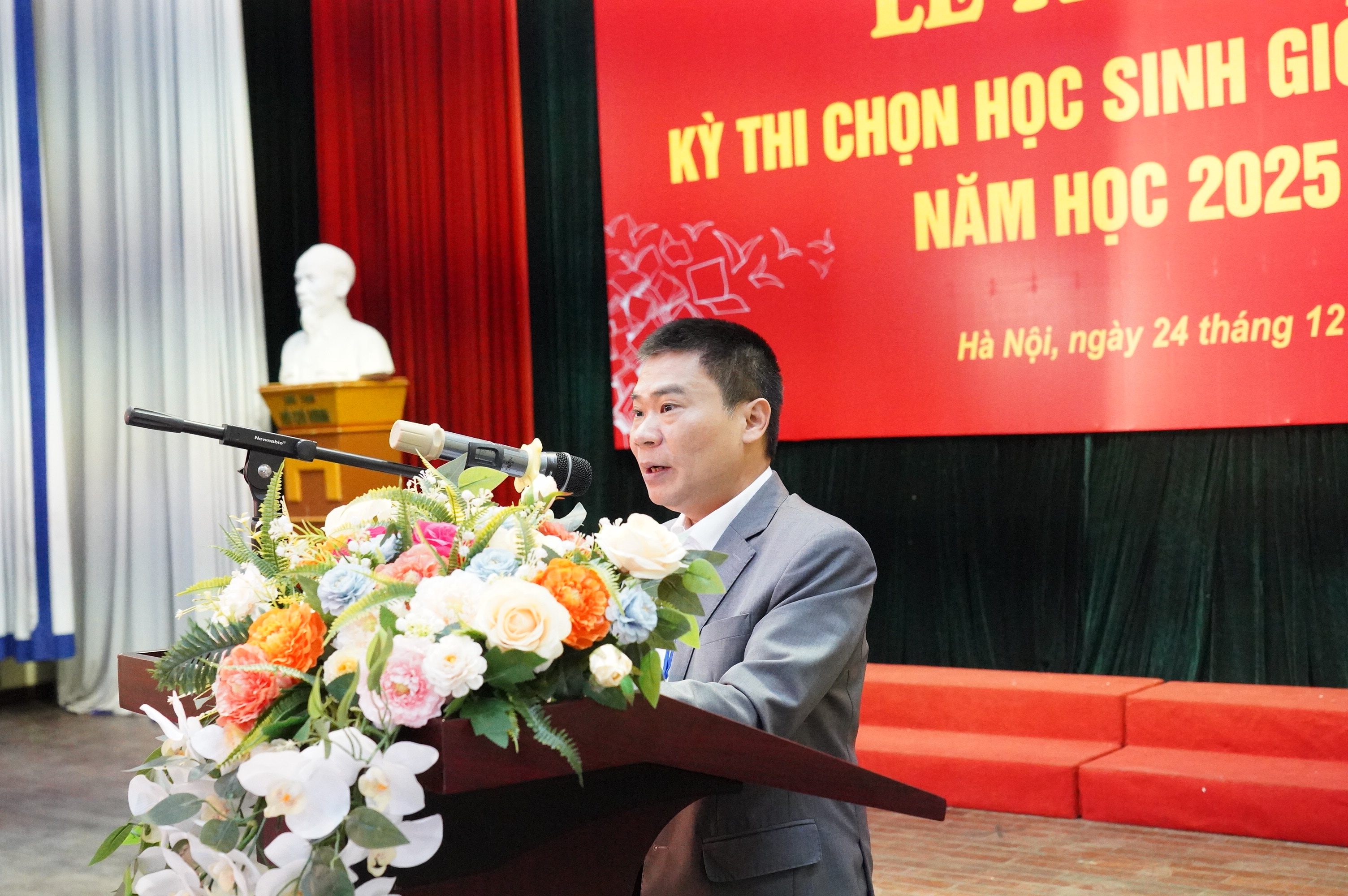 Thay mặt lãnh đạo Hội đồng coi thi, TS. Lê Công Lợi, Hiệu trưởng Trường THPT Chuyên Khoa học Tự nhiên công bố quyết định về việc thành lập Hội đồng coi thi, thành lập Đoàn kiểm tra công tác coi thi tại Kỳ thi chọn học sinh giỏi quốc gia năm học 2025-2026 – Hội đồng coi thi Đại học Quốc gia Hà Nội.