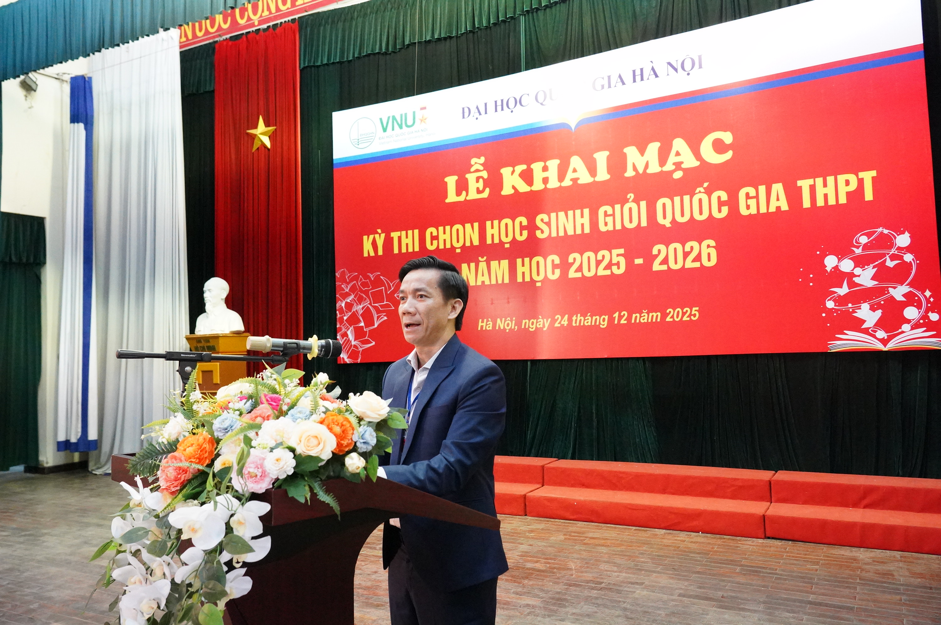 Sáng ngày 24/12/2025, tại hội trường Nhà văn hoá, Ký túc xá Mễ Trì (182 Lương Thế Vinh, Thanh Xuân, Hà Nội) đã diễn ra Lễ khai mạc kỳ thi chọn học sinh giỏi quốc gia năm học 2025-2026 của Hội đồng coi thi Đại học Quốc gia Hà Nội.