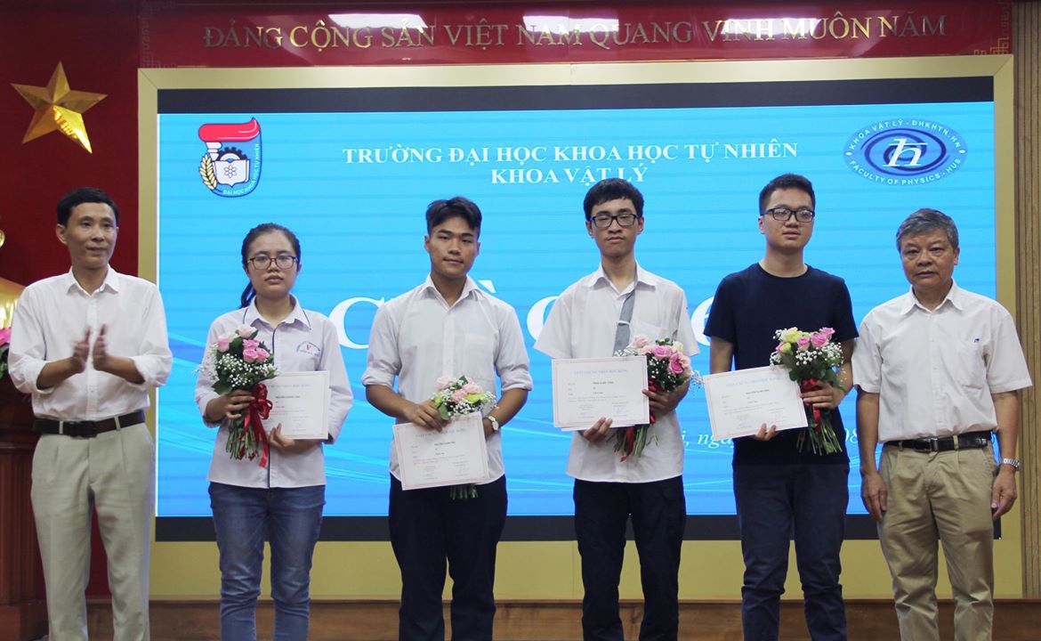NGOÀI THỦ KHOA VÀ Á KHOA ĐẦU VÀO, NĂM 2019, KHOA VẬT LÝ VUI MỪNG CHÀO ĐÓN NHỮNG TÂN SINH VIÊN XUẤT SẮC LÀ CÁC CÁC BẠN ĐÃ ĐẠT HUY CHƯƠNG VÀNG, HUY CHƯƠNG BẠC OLYMPIC VẬT LÝ QUỐC TẾ. ĐÓ LÀ NGUYỄN KHÁNH LINH - HC VÀNG OLYMPIC VẬT LÝ QUỐC TẾ (IPHO), TRẦN XUÂN TÙNG - HC VÀNG OLYMPIC VẬT LÝ QUỐC TẾ (IPHO), NGUYỄN XUÂN ƯNG - HC VÀNG OLYMPIC VẬT LÝ QUỐC TẾ (IPHO) VÀ NGUYỄN XUÂN TÂN - HC BẠC CHÂU Á 2018; HC ĐỒNG CHÂU Á 2019; HC BẠC VẬT LÝ QUỐC TẾ NĂM 2018.