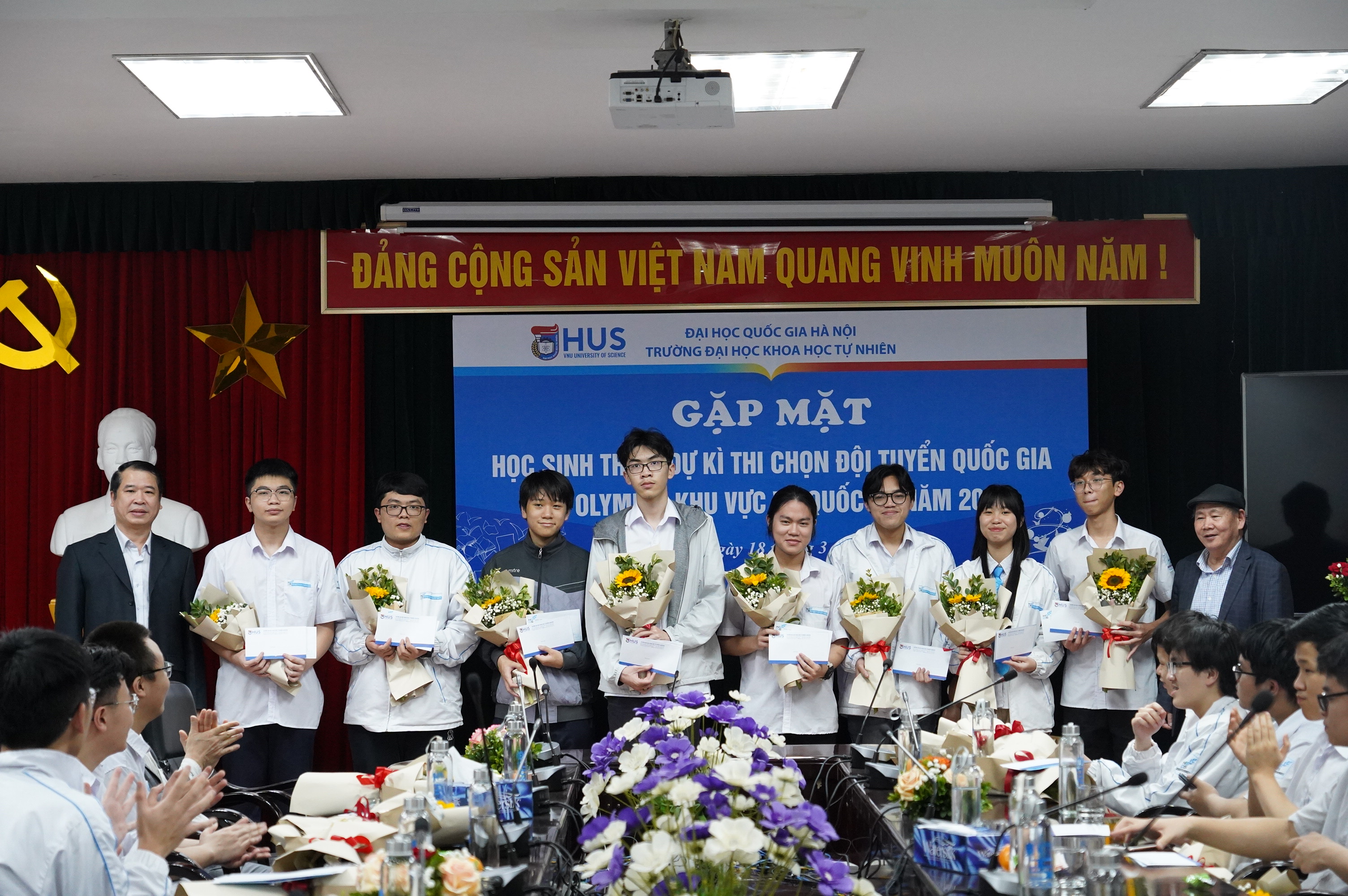 Để động viên, khích lệ tinh thần các em học sinh, Trường ĐHKHTN đã tặng hoa và quà tới 31 học sinh tham dự Kỳ thi chọn đội tuyển quốc gia thi Olympic khu vực và quốc tế năm 2024.