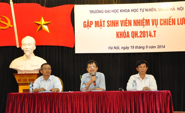 Chiều ngày 19/9/2014, Trường Đại học Khoa học Tự nhiên đã tổ chức gặp gỡ với 249 sinh viên nhiệm vụ chiến lược (NVCL) Khóa QH.2014.T nhằm giải đáp các thắc mắc trong học tập, các vấn đề liên quan tới quyền lợi, nghĩa vụ, việc thực hiện chế độ, chính sách, v.v… cũng như lắng nghe các ý kiến đóng góp của sinh viên.