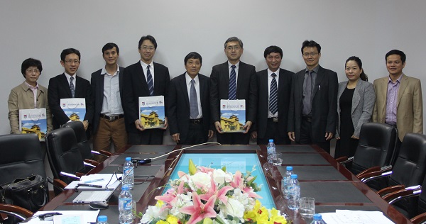 Tại buổi họp, GS. Hiroyasu Ohtsu và PGS.TS Nguyễn Văn Nội đã thảo luận về dự án hợp tác đào tạo sau đại học mang tên: "Chương trình Quốc tế về phát triển xã hội trong giai đoạn biến đổi khí hậu".