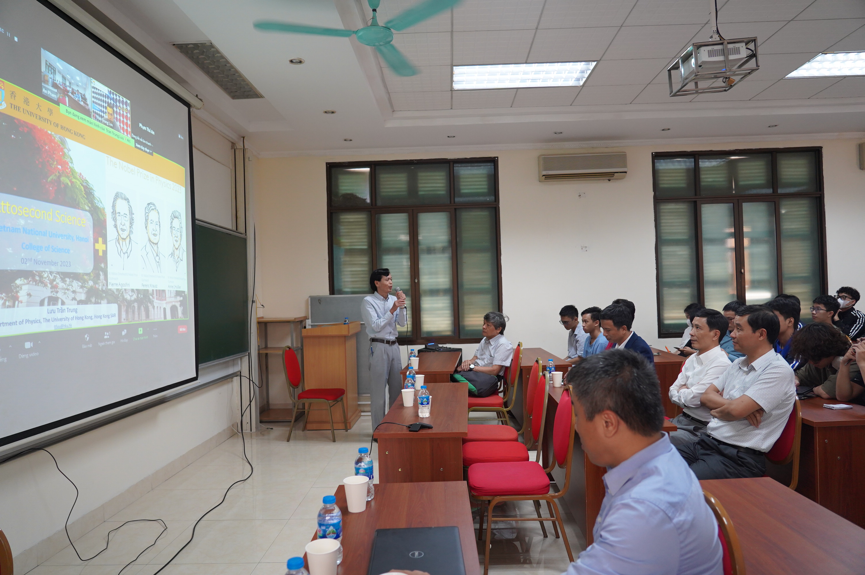 Chiều ngày 02/11/2023, tại Trường ĐHKHTN – ĐHQGHN đã diễn ra chương trình Bài giảng đại chúng theo hình thức trực tuyến với nội dung “Kỹ thuật atto giây và giải Nobel Vật lý 2023”. Chương trình do Ban đào tạo Hệ Cử nhân khoa học tài năng phối hợp với Khoa Vật lý tổ chức.