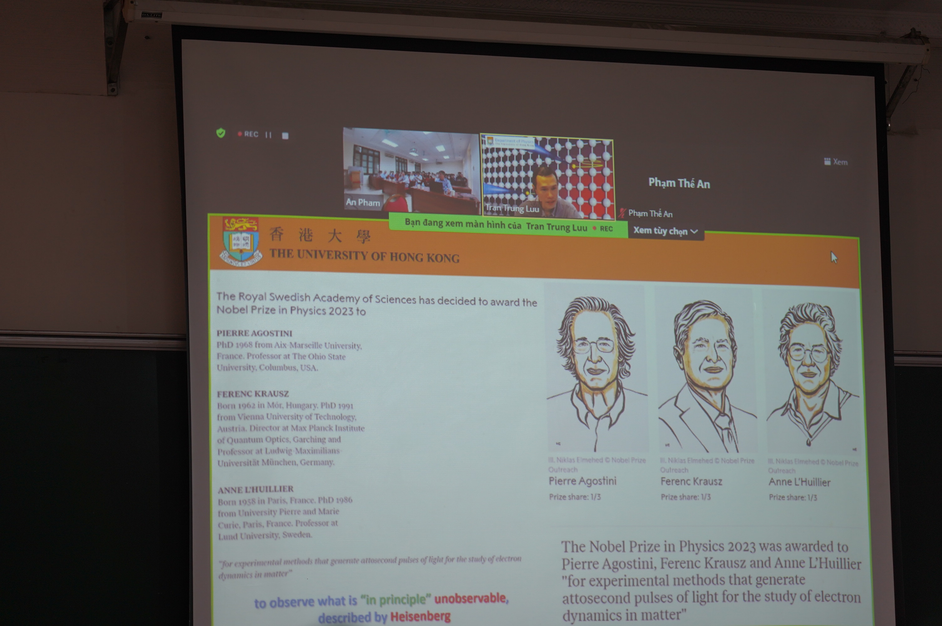 Diễn giả của bài giảng “Kỹ thuật atto giây và giải Nobel Vật lý 2023” là nhà Vật lý trẻ xuất sắc: TS. Lưu Trần Trung, Khoa Vật lý, hiện đang là giảng viên Đại học Hong Kong, đồng thời là nhà sáng lập và điều hành Công ty cung cấp giải pháp công nghệ cao XEng Limited.