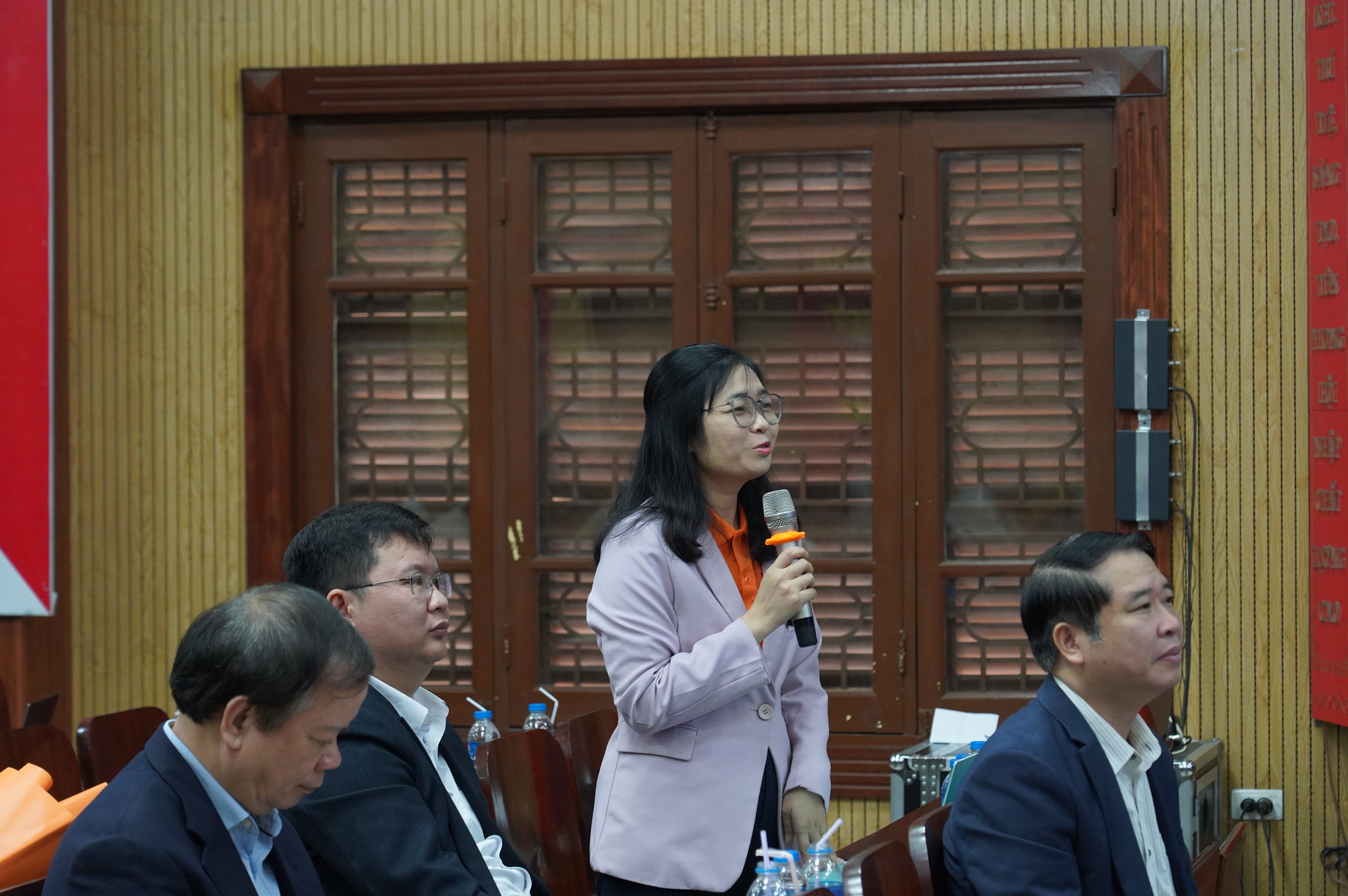 GS.TS Trần Thị Thanh Tú, Trưởng Ban Khoa học & Đổi mới Sáng tạo, ĐHQGHN trình bày báo cáo kết quả các chương trình đối thoại Khoa học và Công nghệ trước đây, định hướng hoạt động Khoa học Công nghệ & Đổi mới sáng tạo năm 2025, cùng các chính sách mới và chương trình hành động thực hiện Nghị quyết 57-NQ/TW của ĐHQGHN.
