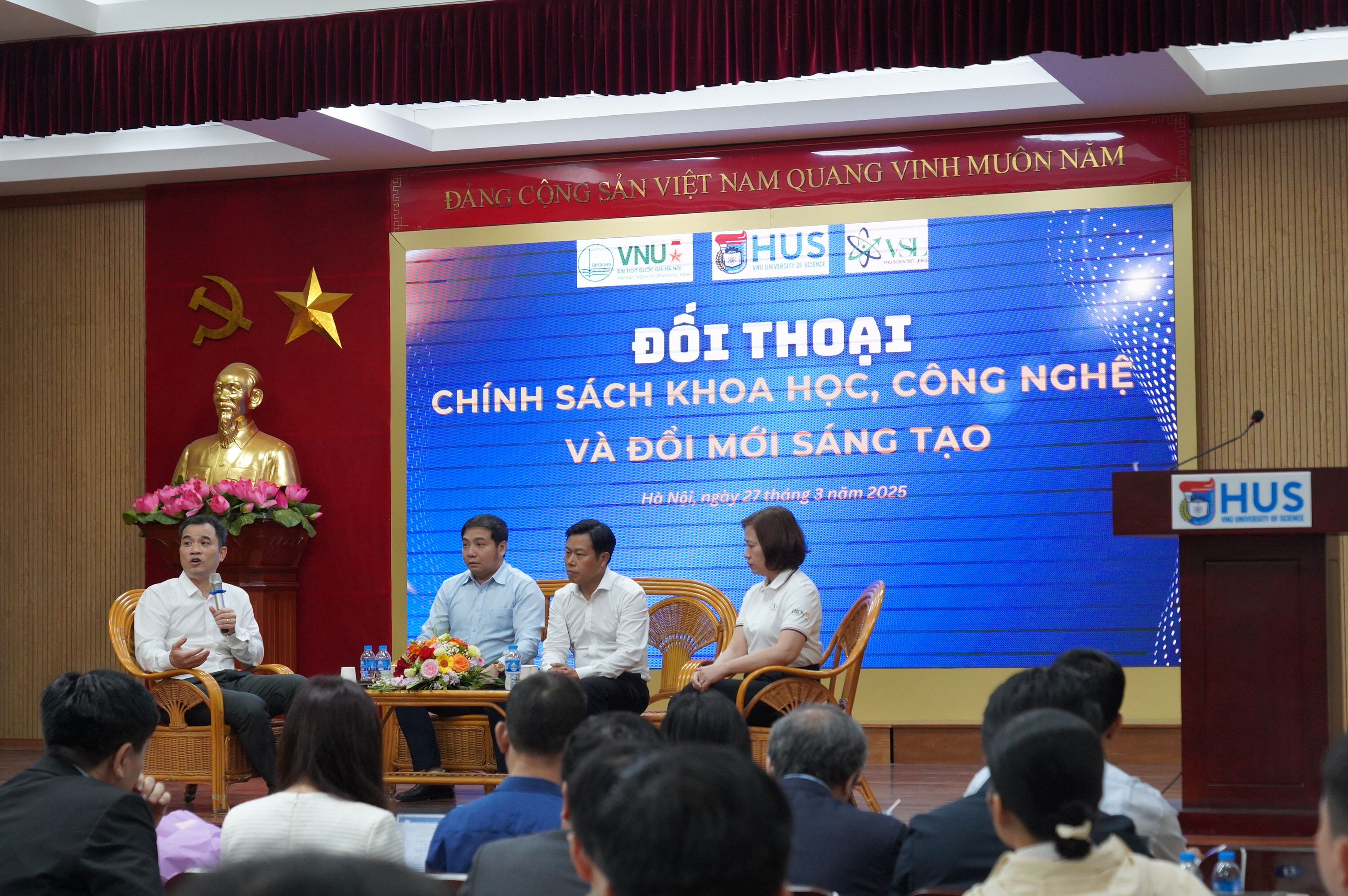 Ngày 27/3/2025, tại Trường Đại học Khoa học Tự nhiên – Đại học Quốc gia Hà Nội đã diễn ra Chương trình Đối thoại Chính sách Khoa học Công nghệ và Đổi mới Sáng tạo lần thứ nhất năm 2025 do Đại học Quốc gia Hà Nội tổ chức. Chương trình là diễn đàn để các nhà khoa học trong hệ sinh thái Đại học Quốc gia Hà Nội chia sẻ những khó khăn vướng mắc liên quan đến chính sách, đề xuất các giải pháp thúc đẩy nghiên cứu khoa học và đổi mới sáng tạo.