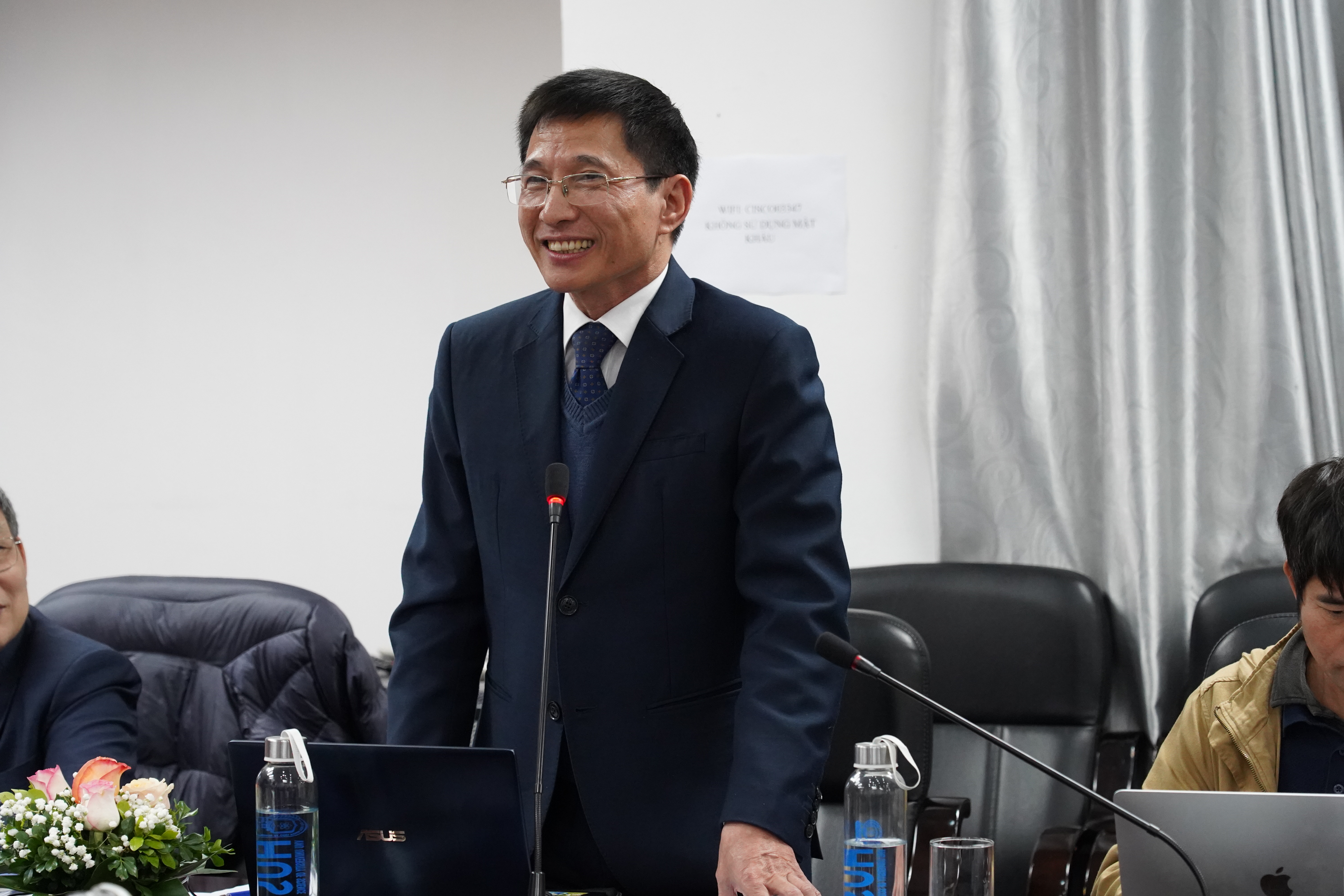 Thay mặt Trường ĐHKHTN, GS.TSKH. Vũ Hoàng Linh, Hiệu trưởng Nhà trường nhiệt liệt chào mừng các giáo sư, các quý vị đại biểu tới dự đại hội.
