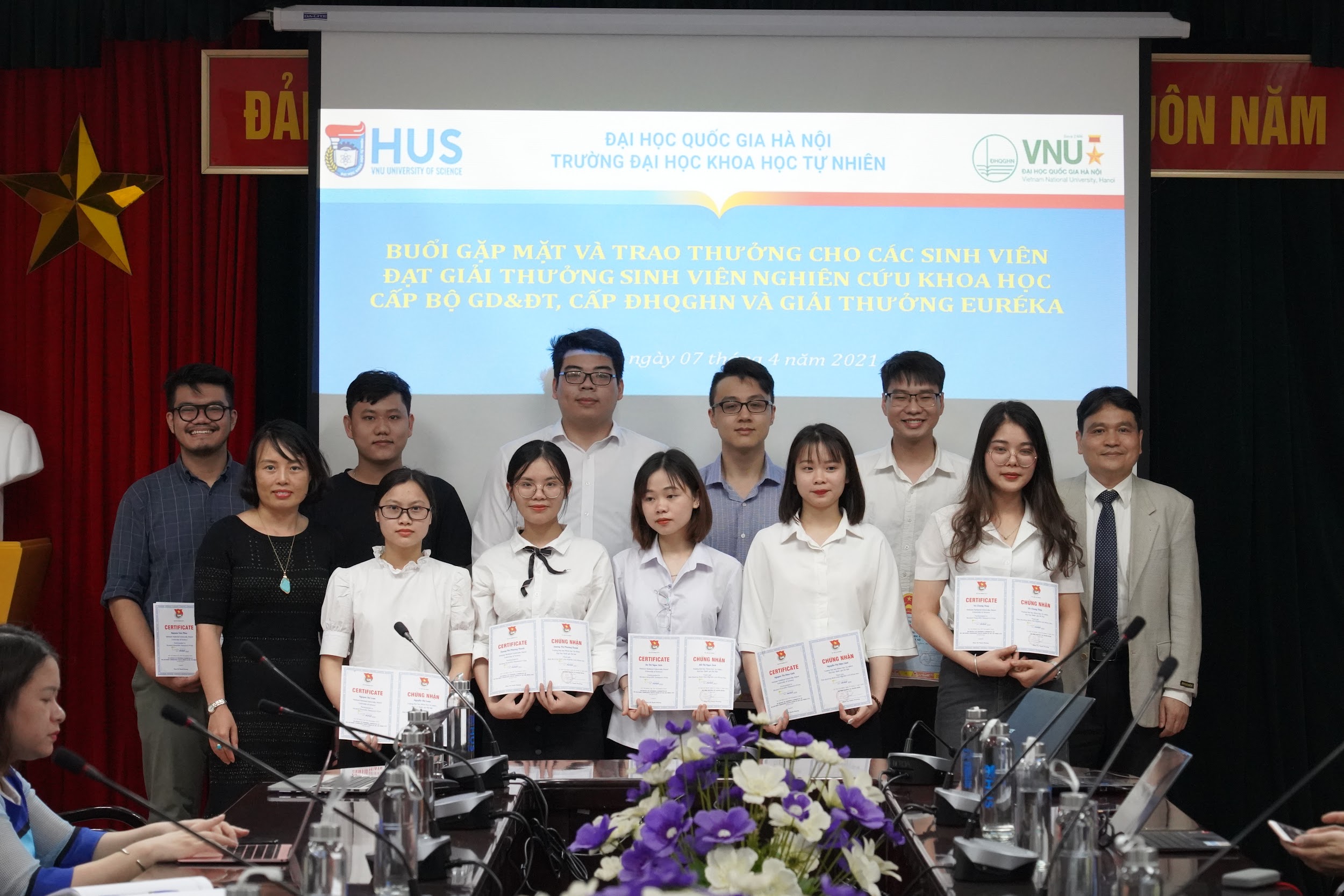 Sáng 7/4/2021, Trường Đại học Khoa học Tự nhiên, ĐHQGHN đã tổ chức buổi gặp mặt và trao thưởng cho các bạn sinh viên đạt giải thưởng Sinh viên nghiên cứu khoa học cấp Bộ GD&ĐT, cấp ĐHQGHN và giải thưởng Euréka lần thứ 22 năm 2020. Buổi gặp mặt nhằm vinh danh những sinh viên đã có những công trình nghiên cứu khoa học xuất sắc trong năm học 2019 - 2020.