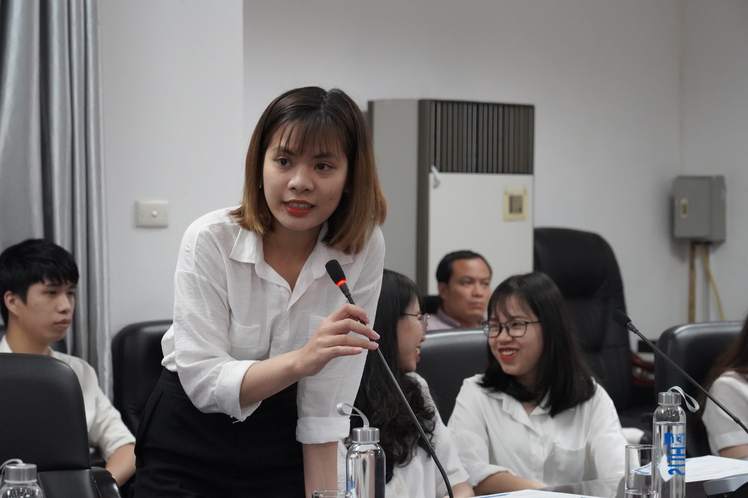 Sinh viên Nguyễn Thị Thùy Linh bày tỏ những suy nghĩ của mình tại buổi gặp mặt