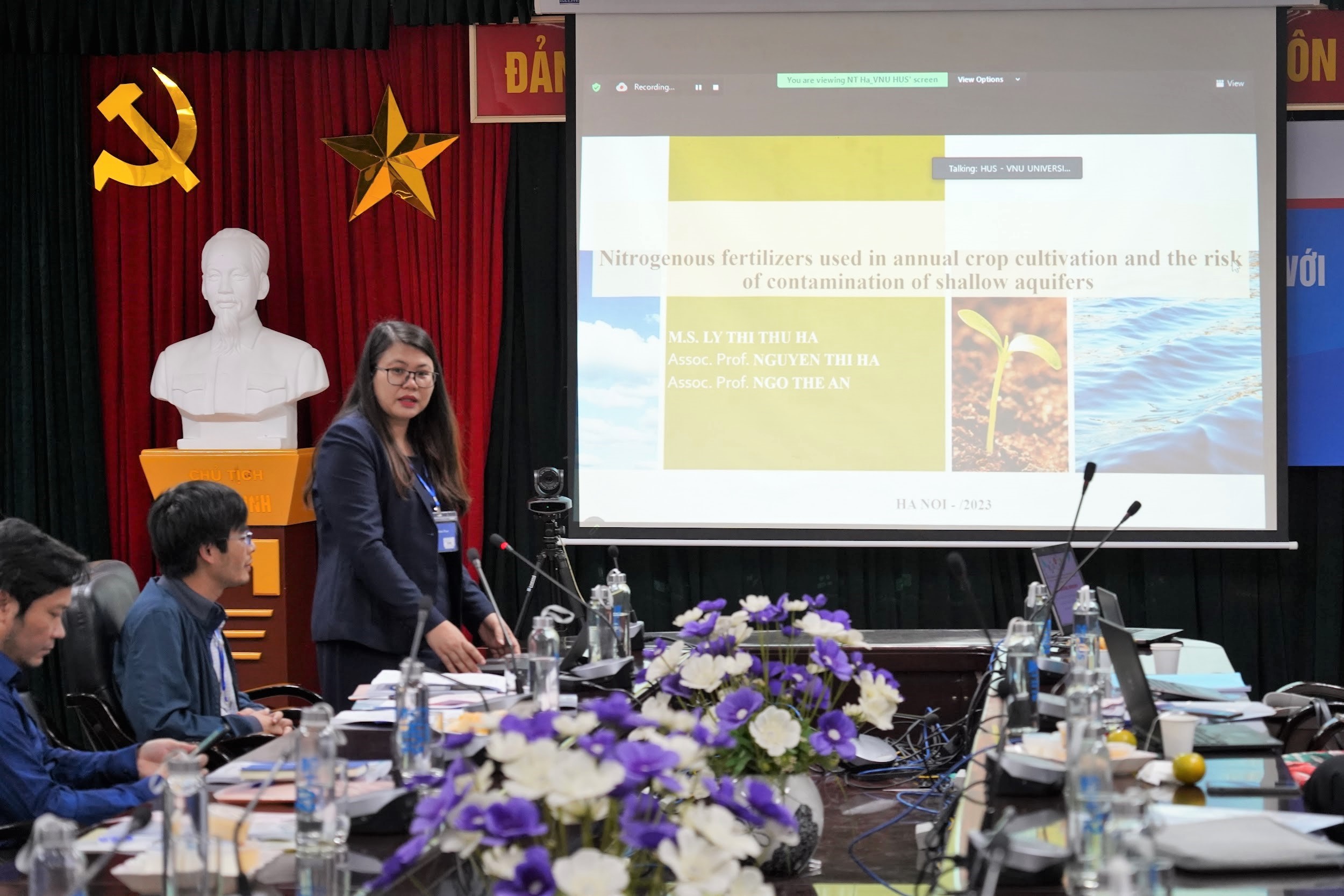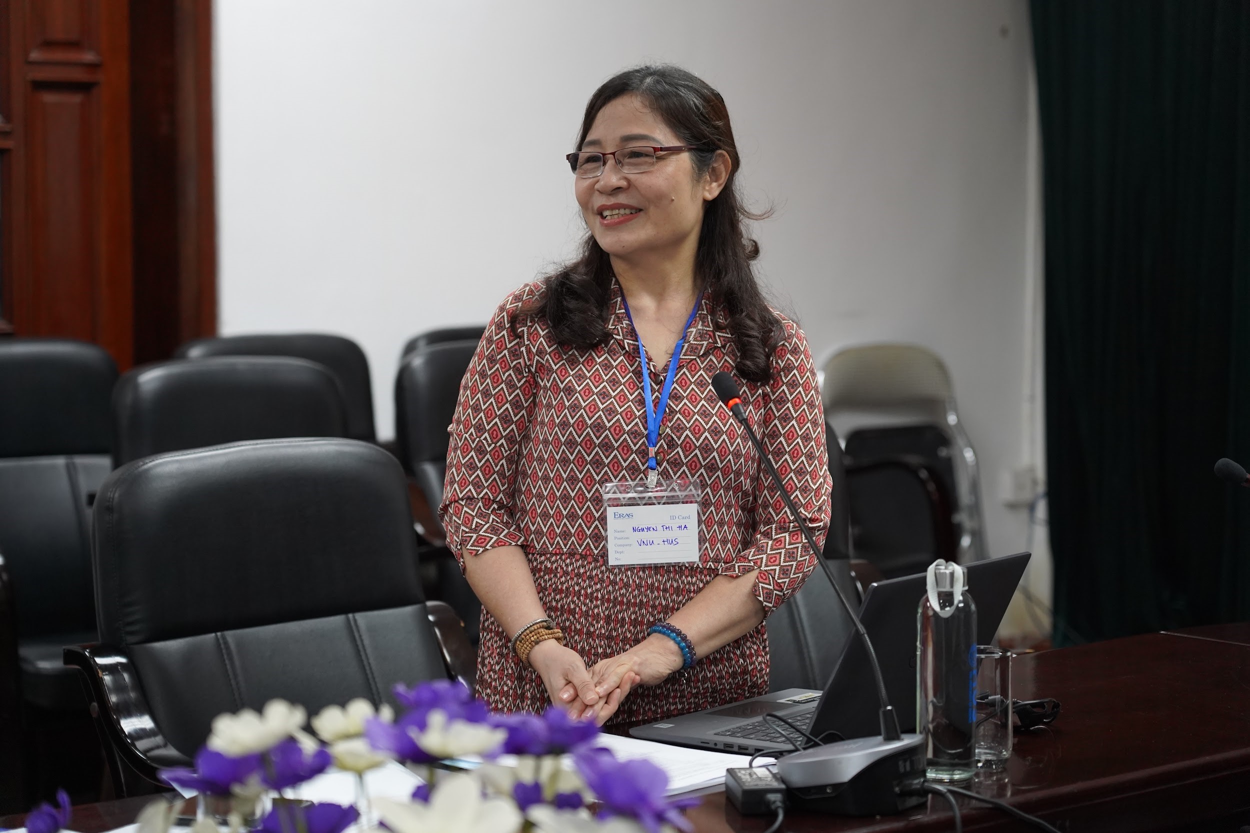 PGS.TS. Nguyễn Thị Hà, chuyên gia tham gia dự án đến từ Khoa Môi trường, Trường ĐHKHTN chủ trì phiên báo cáo thứ nhất tại hội thảo