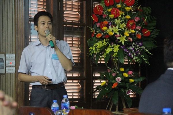 TS. Nguyễn Văn Sáng, cán bộ Khoa Sinh học, Trường ĐHKHTN trình bày báo cáo “Cơ sở cấu trúc cho việc chèn peptide dermcidin, DCD-1L vào màng tế bào”
