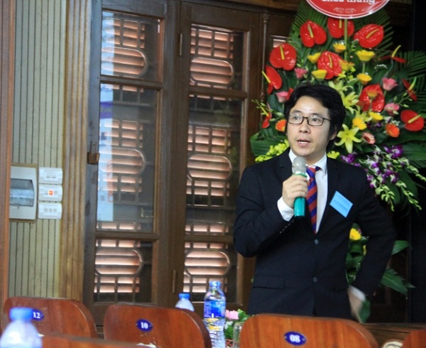 GS.TS. Kazuo Sakurai, Giám đốc Trung tâm Nghiên cứu vật liệu Y sinh, Đại học Kitakuyshu, Nhật Bản trình bày cáo về đề tài “Beta-glucans trong dẫn truyền thuốc bằng oligonucleotide: hệ thống dẫn truyền thuốc hướng đích tế bào miễn dịch với Dectin-1”