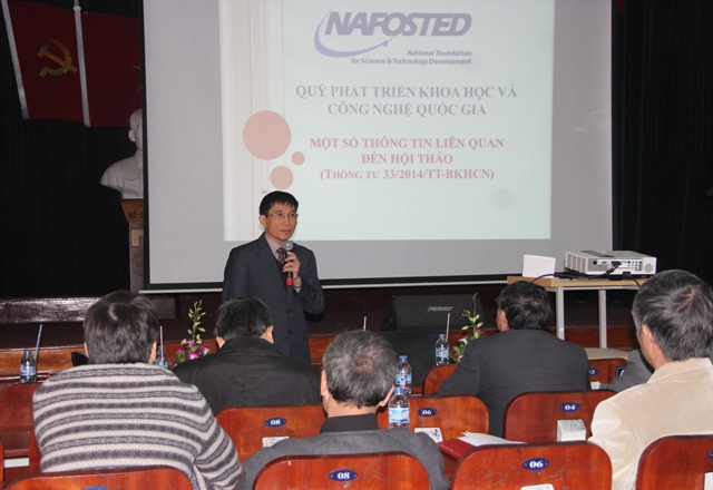 GS.TS Phan Tuấn Nghĩa đã giới thiệu tới toàn thể hội nghị về Quỹ Phát triển Khoa học và Công nghệ Quốc gia (NAFOSTED) – một trong những Quỹ tài trợ, cho vay để thực hiện nhiệm vụ khoa học và công nghệ của các tổ chức, cá nhân; góp phần thúc đẩy, nâng cao hoạt động nghiên cứu khoa học trong các trường đại học và viện nghiên cứu; phát triển, nuôi dưỡng năng lực nghiên cứu của các nhà khoa học, tăng nhanh số lượng kết quả nghiên cứu khoa học của Việt Nam được công bố quốc tế, v.v…