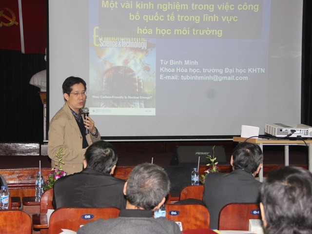 Hội nghị cũng được nghe một số tham luận như “Về khả năng công bố và công bố nhiều công trình vật lý trên các tạp chí quốc tế uy tín có ISI” (của GS.TS Nguyễn Quang Báu), “Một vài kinh nghiệm trong việc công bố quốc tế” (của PGS.TS Từ Bình Minh). Hai tác giả đã đưa ra ví dụ, kinh nghiệm cụ thể khi công bố bài báo quốc tế trong lĩnh vực vật lý, hóa học môi trường và khoa học môi trường trên các tạp chí quốc tế có hệ thống thẩm định.