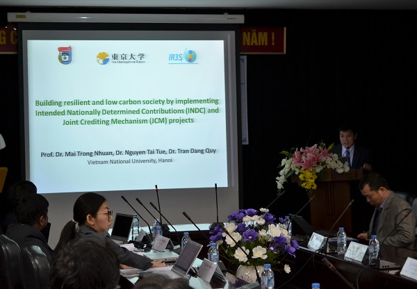 Hội thảo quốc tế về mô hình tích hợp 3E và phát triển các dự án cơ chế tín chỉ chung (JCM) thực hiện đóng góp dự kiến do quốc gia tự quyết định (INDC) do Trường Đại học Khoa học Tự nhiên (ĐHKHTN) và Trường ĐH Tokyo, Nhật Bản phối hợp tổ chức ngày 15/12/2015.