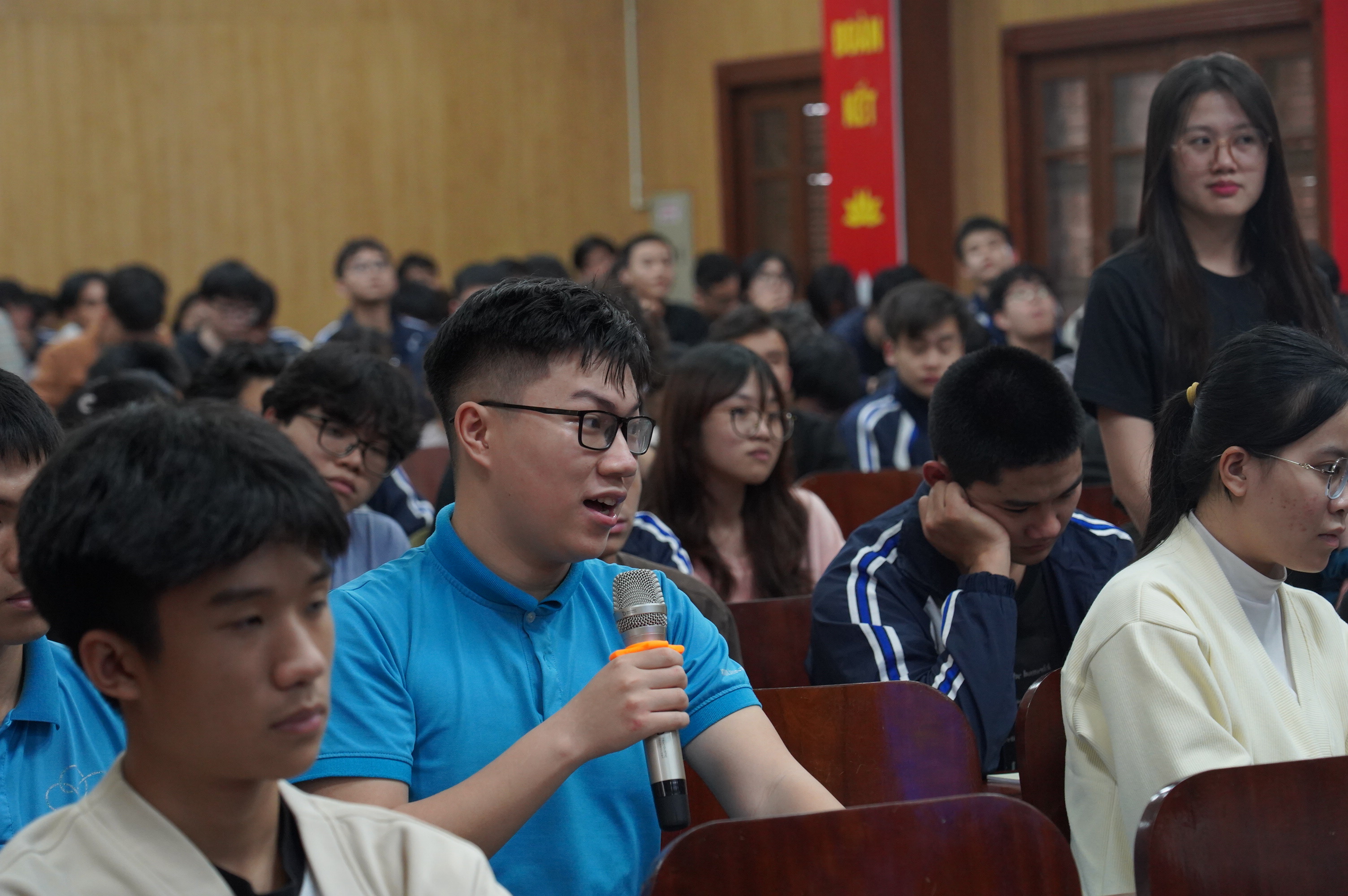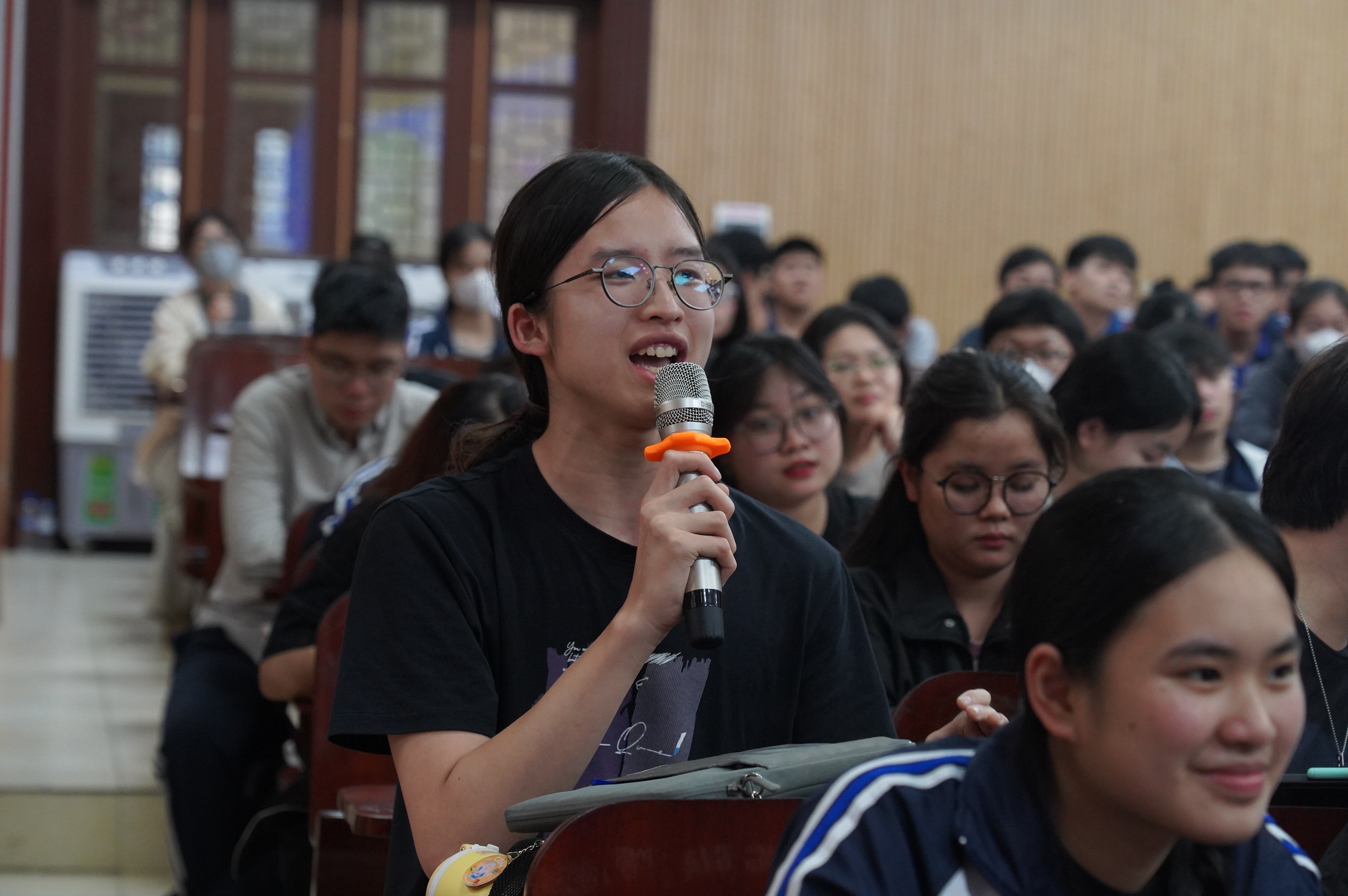 Một học sinh lớp 10 Chuyên Toán Trường THPT Chuyên KHTN đặt câu hỏi cho diễn giả.