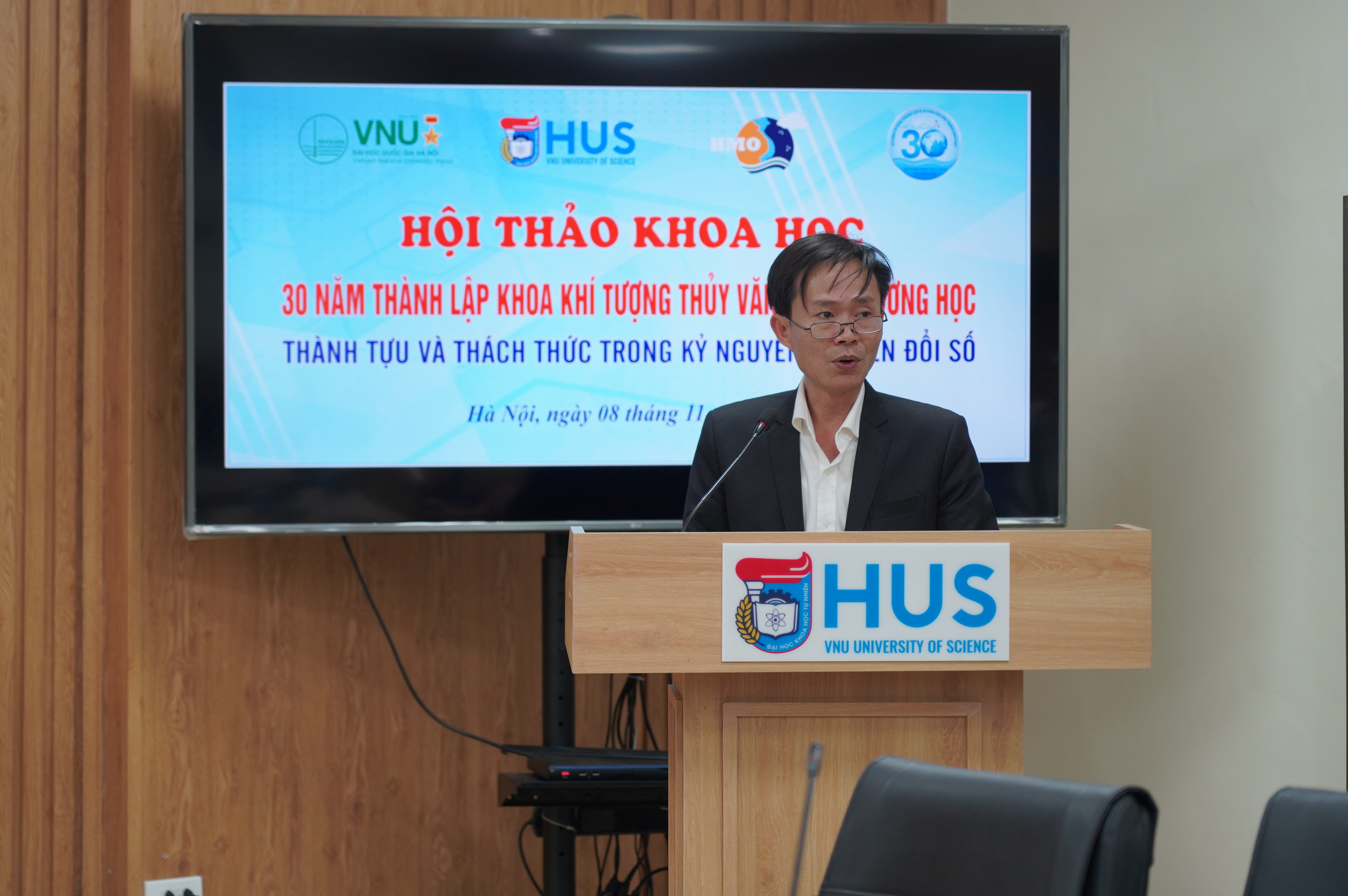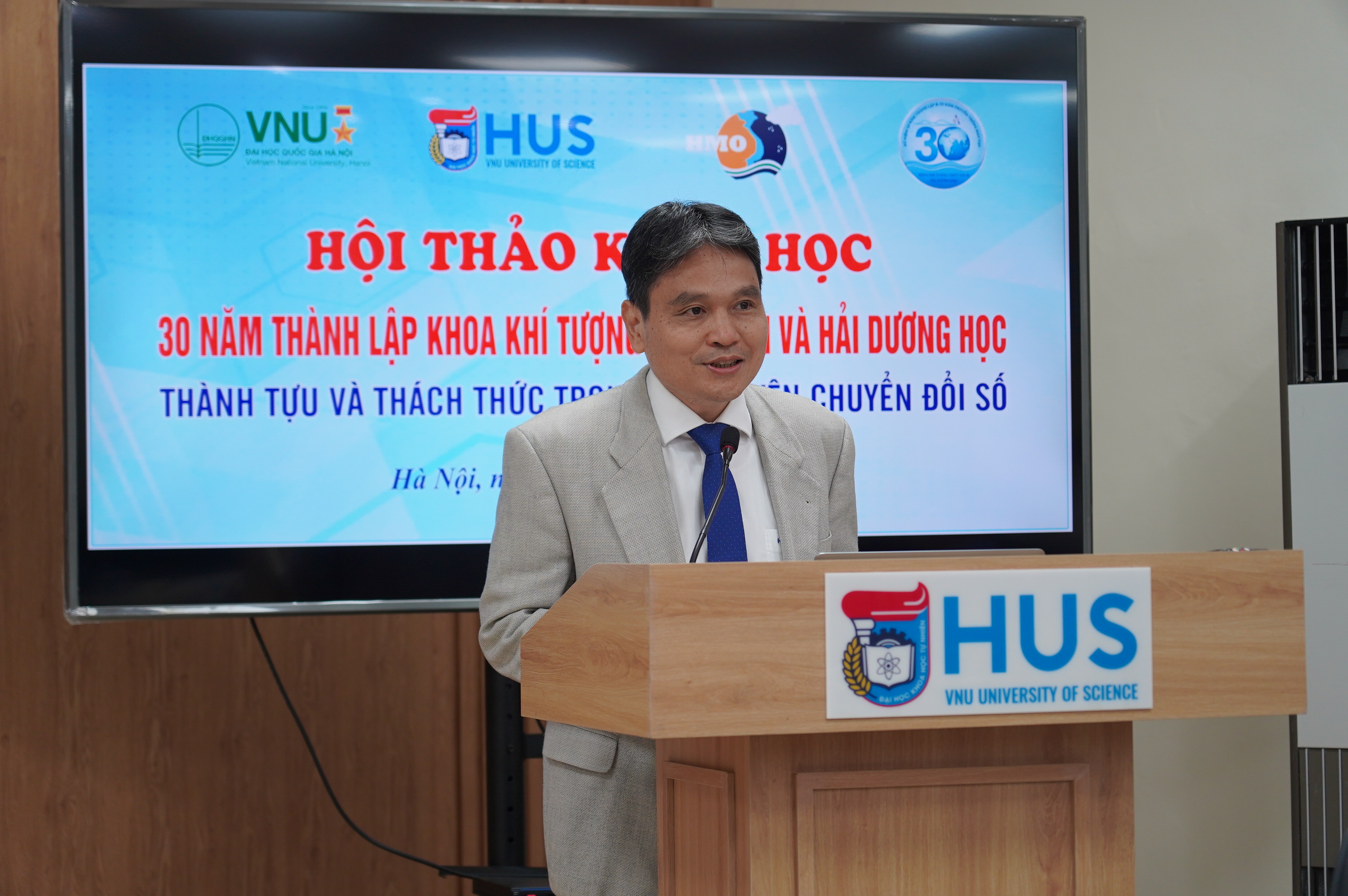 “Gần 60 năm qua, đặc biệt là từ khi Khoa Khí tượng Thuỷ văn và Hải dương học được thành lập năm 1995, các nhà khoa học của Trường ĐHKHTN nói chung và Khoa Khí tượng Thuỷ văn và Hải dương học nói riêng đã có nhiều đóng góp có giá trị cho sự nghiệp phát triển của khoa học, công nghệ trong lĩnh vực khí tượng học, thuỷ văn học, khoa học biển của Việt Nam” – PGS.TS. Trần Quốc Bình, Phó Hiệu trưởng Trường ĐHKHTN nói.