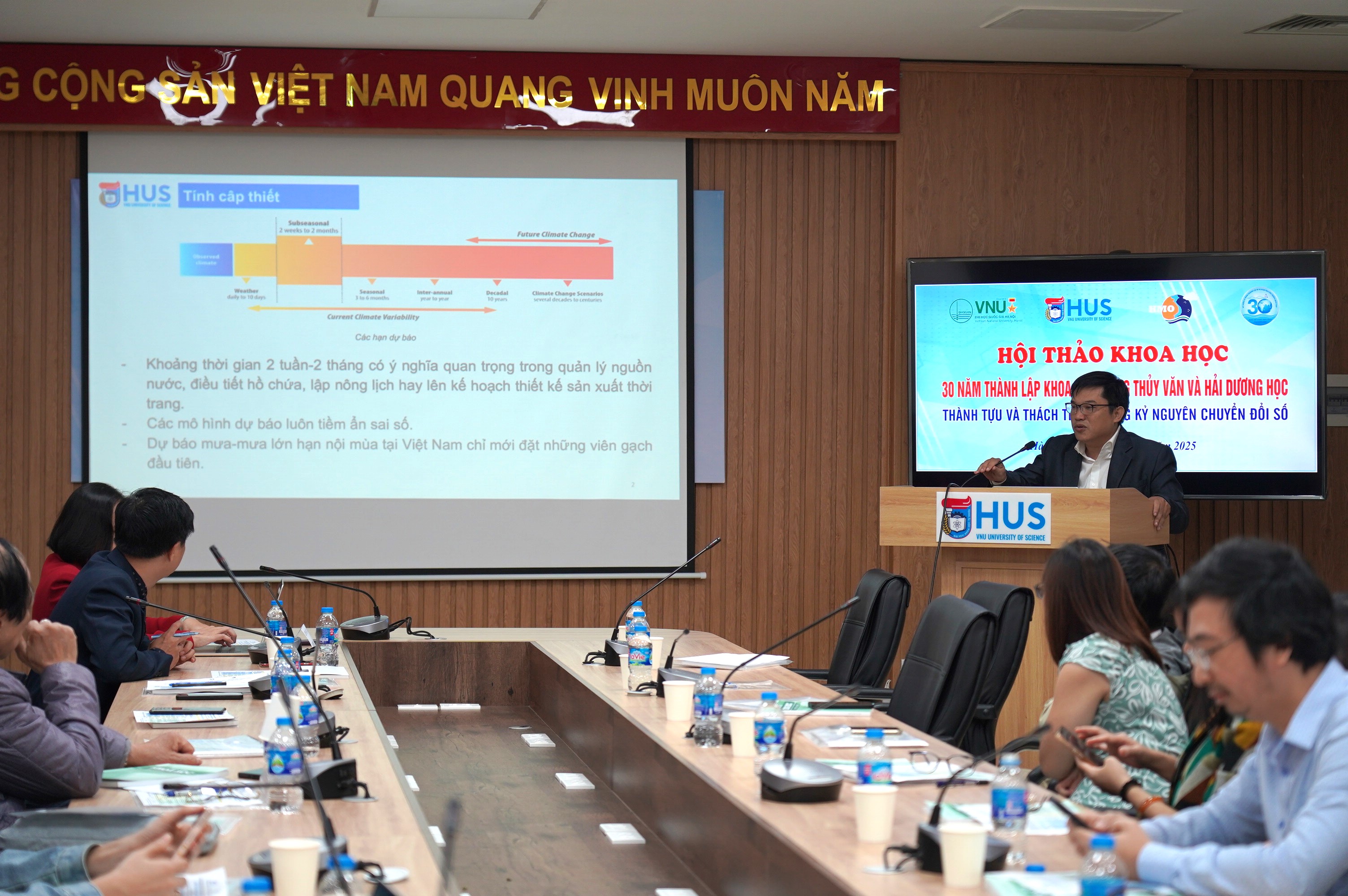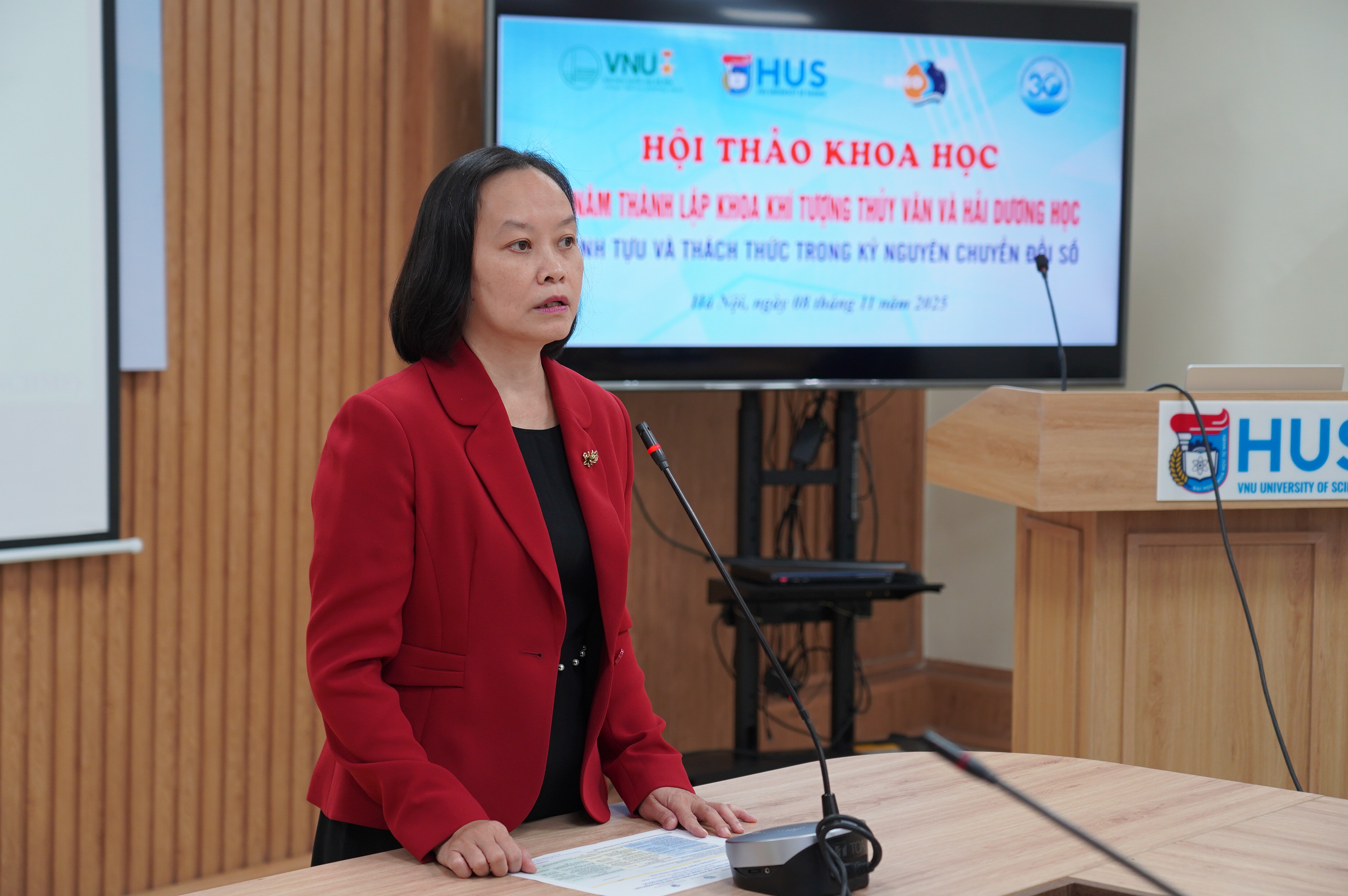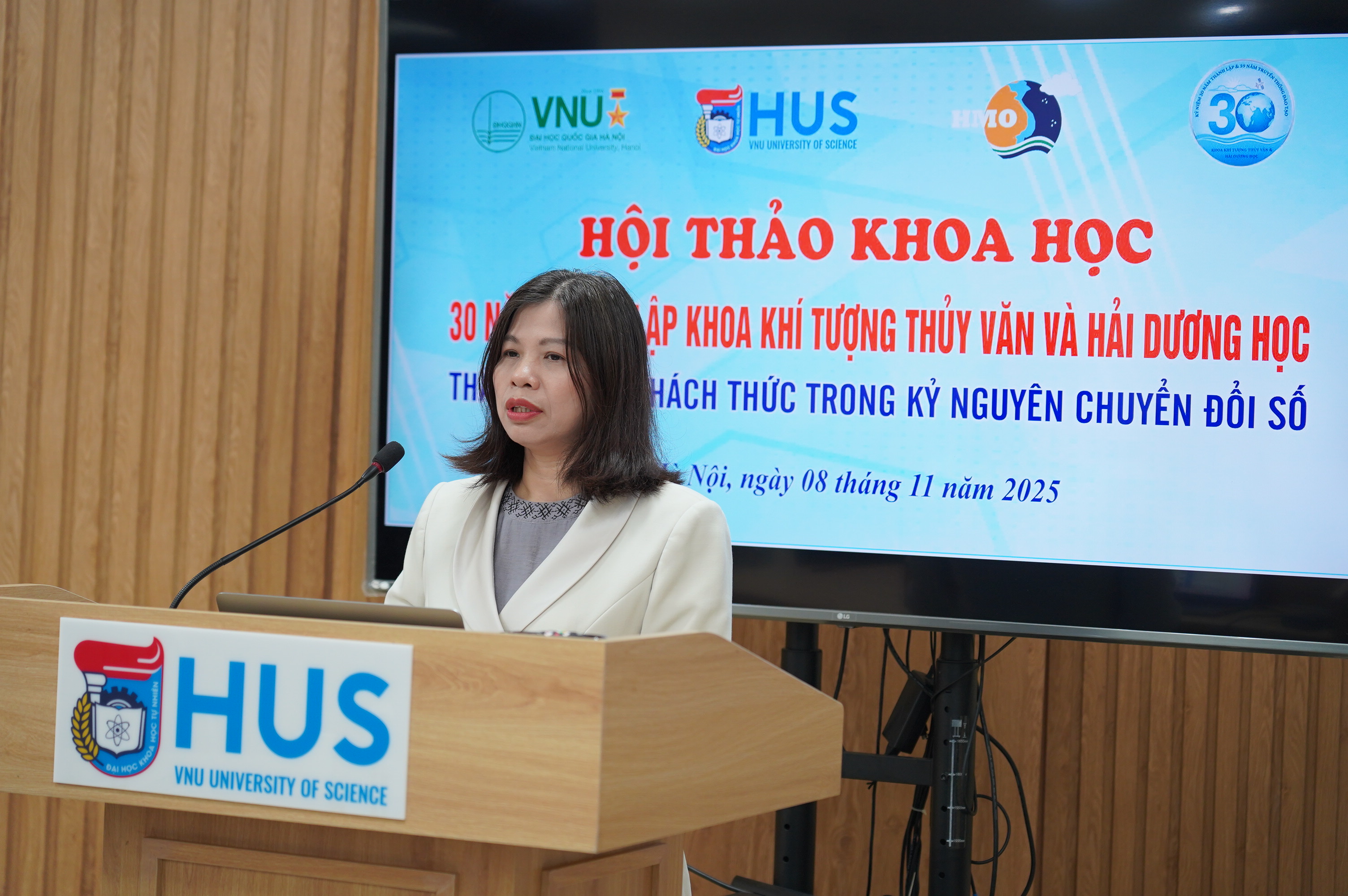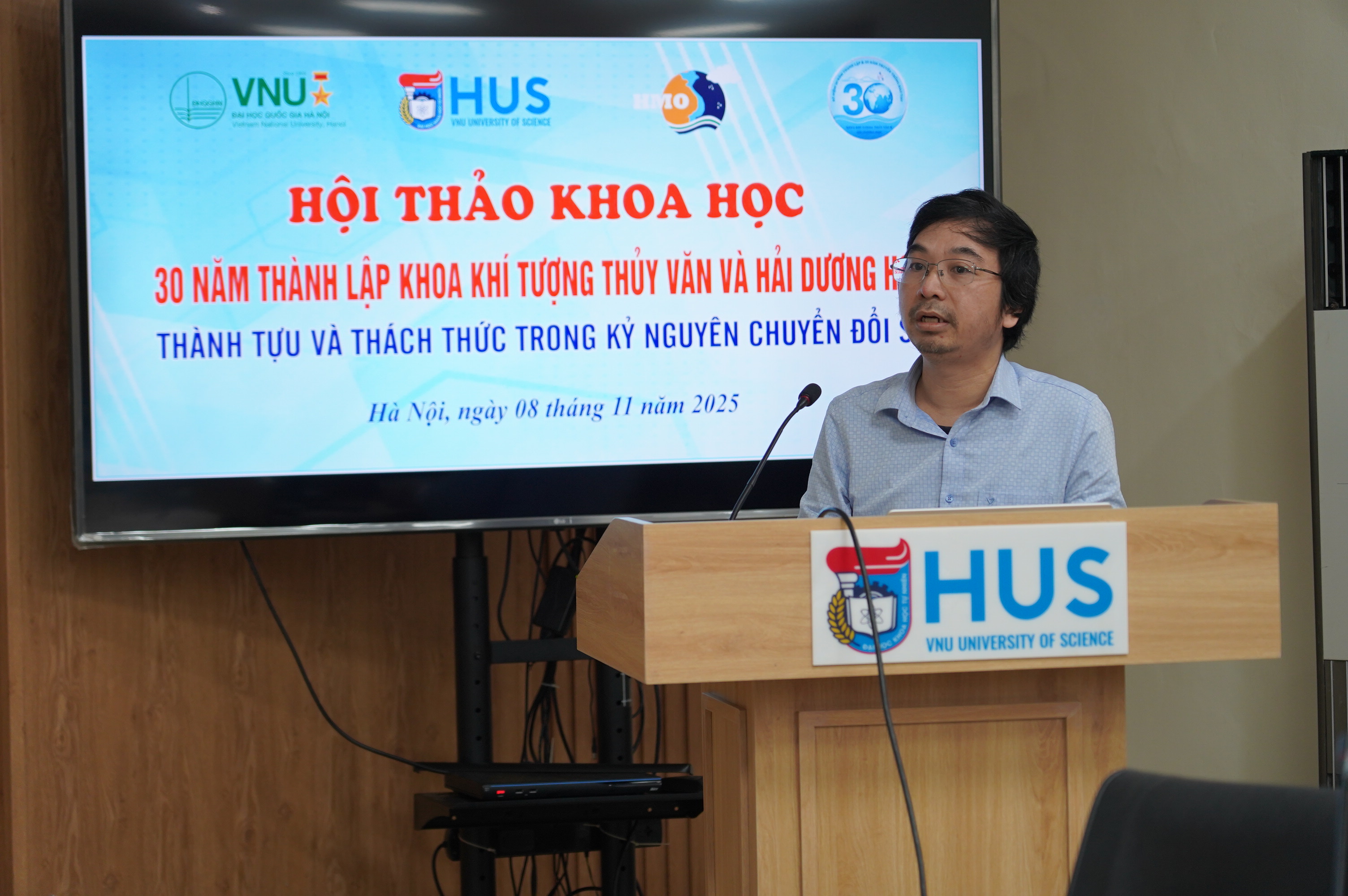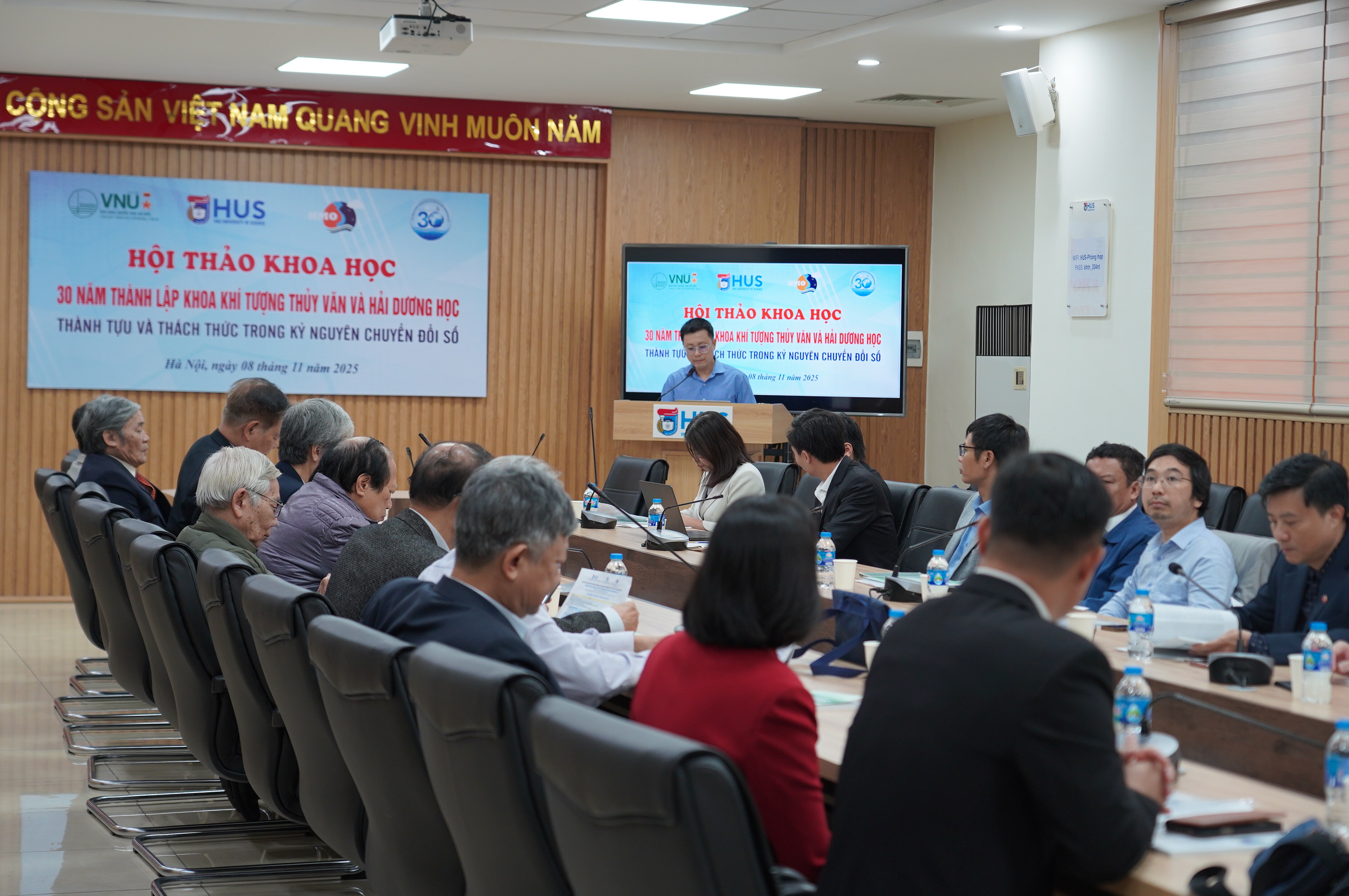 Trong chuỗi sự kiện kỷ niệm 30 năm thành lập Khoa Khí tượng Thủy văn và Hải dương học và 59 năm truyền thống đào tạo, cũng đồng thời với sự kiện kỷ niệm 80 năm thành lập ngành Khí tượng – Thủy văn, sáng ngày 8/11/2025, hội thảo khoa học với chủ đề “Thành tựu và thách thức trong kỷ nguyên chuyển đổi số” đã được đồng tổ chức bởi Trường Đại học Khoa học Tự nhiên, Đại học Quốc gia Hà Nội và Cục Khí tượng – Thủy văn, Bộ Nông nghiệp và Môi trường.