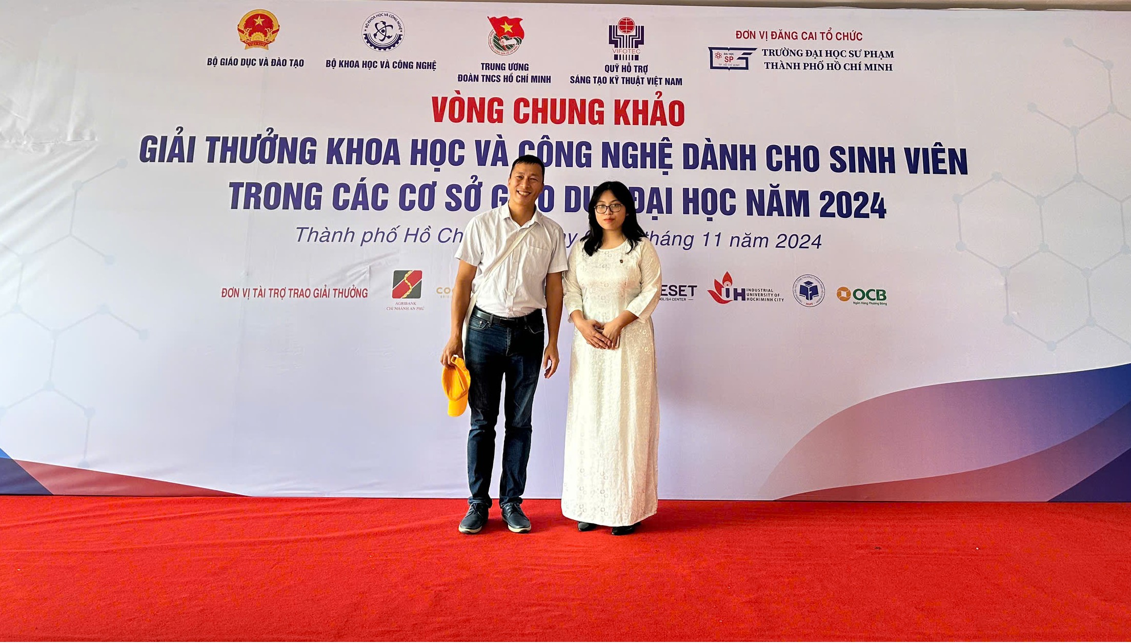 Sinh viên Đỗ Hồng Nhung đạt Giải Nhì Giải thưởng Khoa học và công nghệ dành cho sinh viên trong cơ sở giáo dục đại học năm 2024 và GS.TS. Nguyễn Ngọc Minh - giáo viên hướng dẫn.