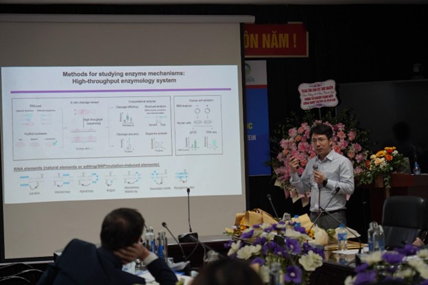 Tại hội thảo, các đại biểu đã nghe 5 báo cáo về các vấn đề: Tìm kiếm enzyme mới từ vi nấm ưa điều kiện khắc nghiệt (PGS.TS. Vũ Nguyên Thành, Viện Công nghiệp thực phẩm, Bộ Công thương trình bày), Giải trình tự gen thế hệ mới trong nghiên cứu phân tử một số bệnh hiếm gặp tại Viện Nghiên cứu hệ gen (GS.TS. Nguyễn Huy Hoàng, Viện Nghiên cứu hệ gen trình bày), High-throughput assays for miRNA biogenesis enzyme mechanisms (PGS.TS. Nguyễn Tuấn Anh, Đại học Khoa học và Công nghệ Hong Kong trình bày), Hệ thống biểu hiện protein tái tổ hợp trong Bacillus subtilis và tiềm năng ứng dụng (PGS.TS. Nguyễn Đức Hoàng, Trường ĐHKHTN, ĐHQG TPHCM trình bày), Một số kết quả phân tích hệ gen và kiểu hình đặc trưng của nguồn gen vi sinh vật Việt Nam (PGS.TS. Phí Quyết Tiến, Viện Công nghệ Sinh học, Viện Hàn lâm Khoa học và Công nghệ Việt Nam trình bày). Sau phần trình bày của các báo cáo viên, các đại biểu đặt câu hỏi, trao đổi, thảo luận để làm rõ một số vấn đề liên quan.